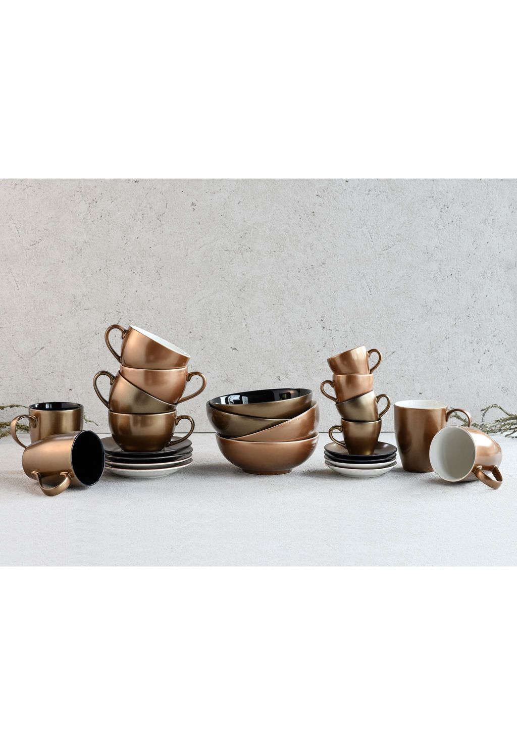 ЧИСТЫЙ ГЛАМУР: Эта посуда привнесет блеск золота и меди в ваш дом. Цветовая гамма вдохновлена роскошью металлов, создавая элегантную и современную атмосферу.