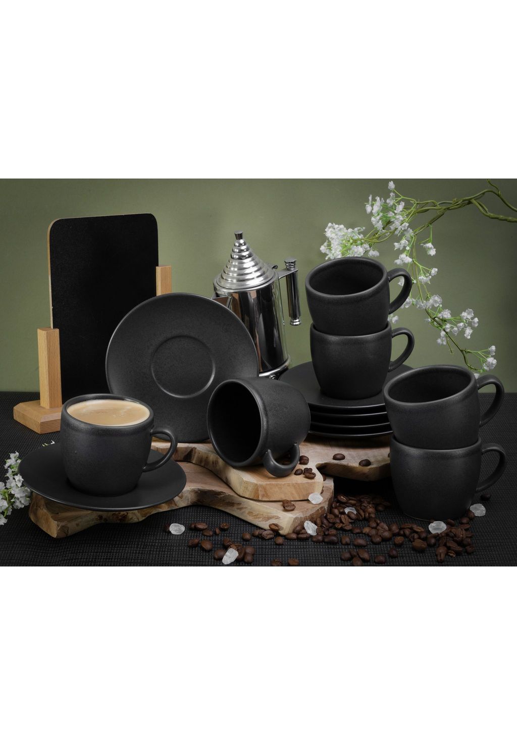 Описание товара: Вы получите красивый набор чашек для капучино из 12 предметов, изготовленных из высококачественной керамической посуды «Made in Europe», в следующем составе: - 6 чашек для капучино, 24 cl каждая - 6 блюдец, 14,9 см Модный цвет «Black Matt» здесь впечатляет особой шелковисто-матовой глазурью в актуальном трендовом образе. Набор является идеальным дополнением к нашей успешной серии посуды «Soft Touch Black». Настоящая приманка для глаз!