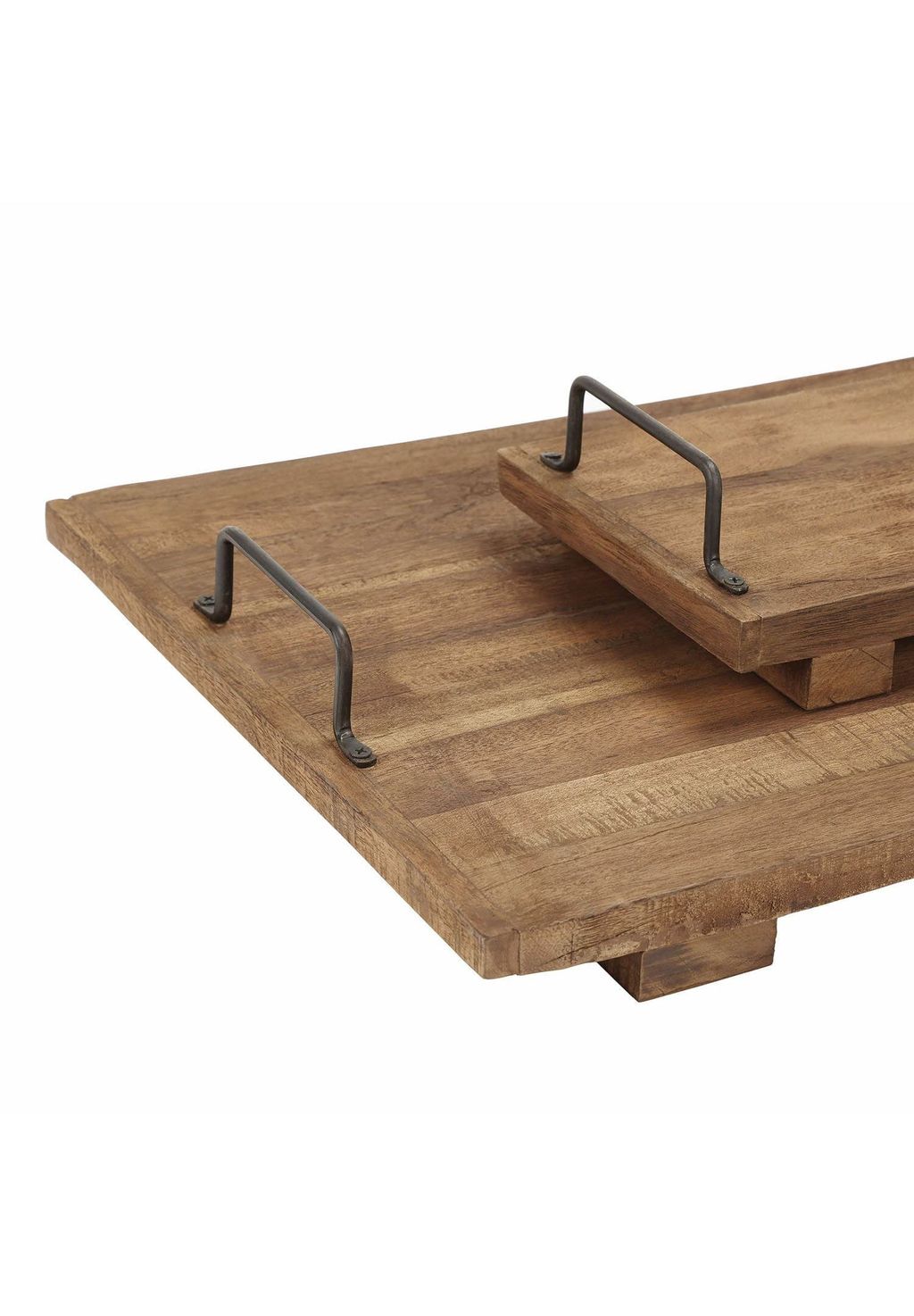 Описание товара: Изделия в деревенском стиле с практичной функциональностью. Изготовлены из переработанной древесины салового дерева. Каждый предмет оснащен двумя ностальгическими железными ручками. Этот высококачественный дуэт готов к вашему воскресному завтраку в постели, для изысканного ужина в шезлонге на террасе под вечерним солнцем и для многих других случаев. Два подноса изготовлены из переработанной древесины салового дерева и имеют железные ручки, которые подчёркивают их ностальгический вид. Ваша еда и напитки будут выглядеть ещё красивее на этих предметах разного размера. В конце концов, еда — это праздник для глаз, и высокий стиль всегда приветствуется. Быстро и легко разместите булочки, круассаны, масло и джем, а также чай и кофе или другие напитки и еду на подносах, чтобы насладиться днём в вашем любимом месте. Наслаждайтесь множеством прекрасных моментов с этим очаровательным набором из двух подносов.