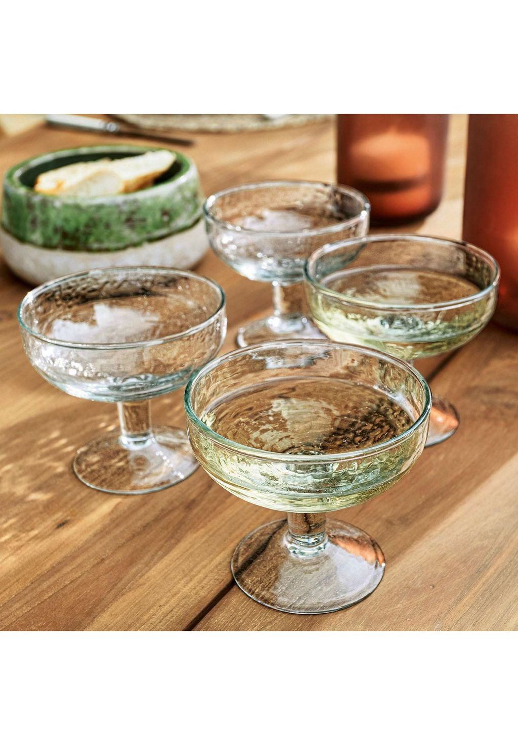 Описание товара: Классическая форма чаши для изысканной атмосферы загородного дома. Неровная поверхность добавляет особый штрих. Прочный и можно мыть в посудомоечной машине. Неподвластная времени красота, но с определенной изюминкой. Этот бокал в стиле классической чаши для шампанского был не выдут вручную, а отштампован вручную, техника, изобретенная в 19 веке и быстро ставшая популярной. Этот набор из четырех бокалов также имеет неровный рельефный узор, но в то же время впечатляет своей прочностью и практичностью в повседневном использовании. Используйте бокалы для подачи игристого вина, шампанского или коктейлей, но вы также можете использовать их в качестве стильной десертной чаши или для подачи выпечки, шоколада и соленых закусок. Независимо от того, для чего вы используете бокалы, набор из четырех бокалов можно мыть в посудомоечной машине.