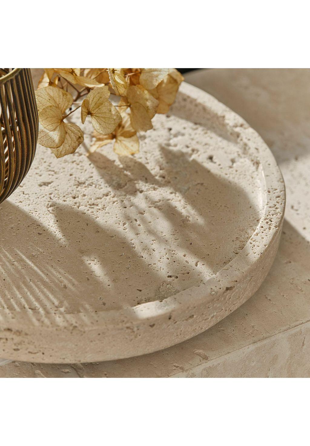 Описание товара: Изготовлен из натурального травертина с уникальной структурой пор. Теплые песочные тона добавят изысканности любому интерьеру. Идеальный баланс функциональности и стильной естественности. Этот поднос из травертина сочетает в себе природную красоту с практичной элегантностью. Мелкопористая поверхность и теплые бежевые оттенки делают каждый предмет уникальным. Благодаря приподнятому краю можно стильно расположить аксессуары, косметику или небольшие декоративные элементы. Изящный акцент для ванной комнаты, кухни или гостиной.