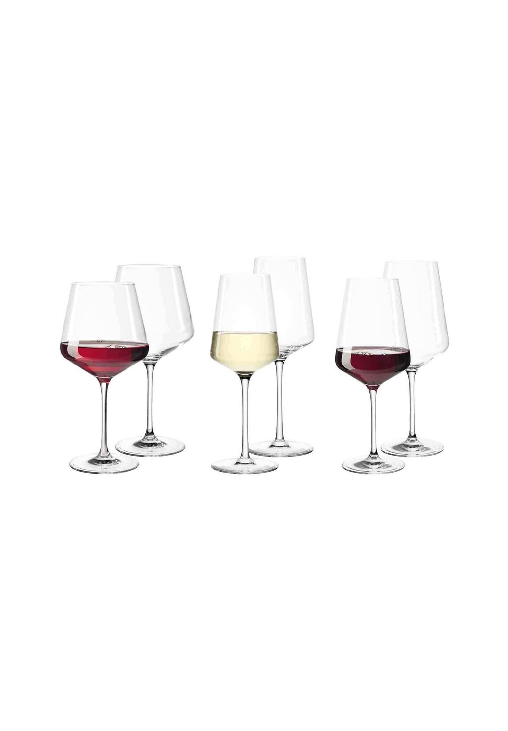 Комплект поставки: 2 бокала для бургундского вина, 2 бокала для красного вина/бордо, 2 бокала для рислинга