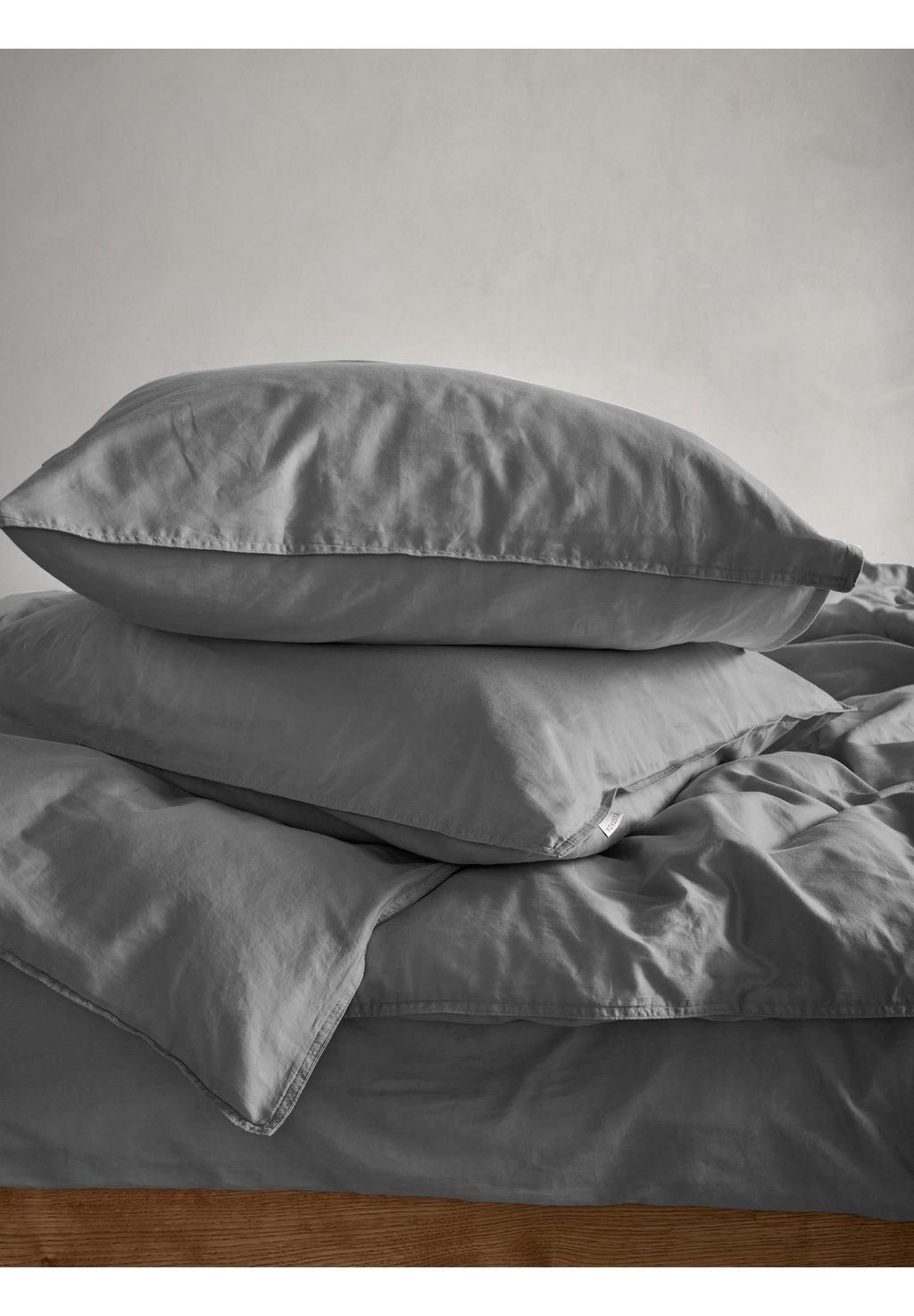 Этот комплект постельного белья состоит из 1 пододеяльника и 1 наволочки; от размера 200x200/220 см в комплект входят 2 наволочки. Идеально сочетается с простынями на резинке и домашними аксессуарами ESSENZA, создавая гармоничный общий вид.