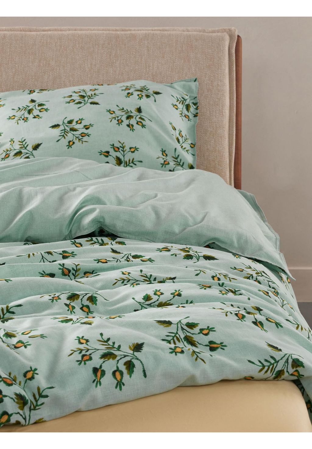 Описание товара: Романтичный принт Jolien, вдохновлённый вышитой ветвью из альбома Рейксмузеума XIX века, привнесёт в вашу спальню историческое очарование. Тщательно вышитые ветки с зелёными листьями и бутонами раскрываются на мягком фоне, усиливая ощущение ручной работы. Изысканная вышивка гармонично сочетается с узором, создавая вневременной и успокаивающий контраст. Переверните Jolien и почувствуйте, как однотонный фон уравновешивает общую картину. Пододеяльник из 100% органического хлопка с имитацией льна создаст естественный и спокойный вид в вашей спальне. Эта ткань дышащая и влагоотталкивающая, поэтому вы сможете наслаждаться оптимальным комфортом во время сна. Структура хлопка придаёт принту дополнительную глубину и ощущение роскоши.