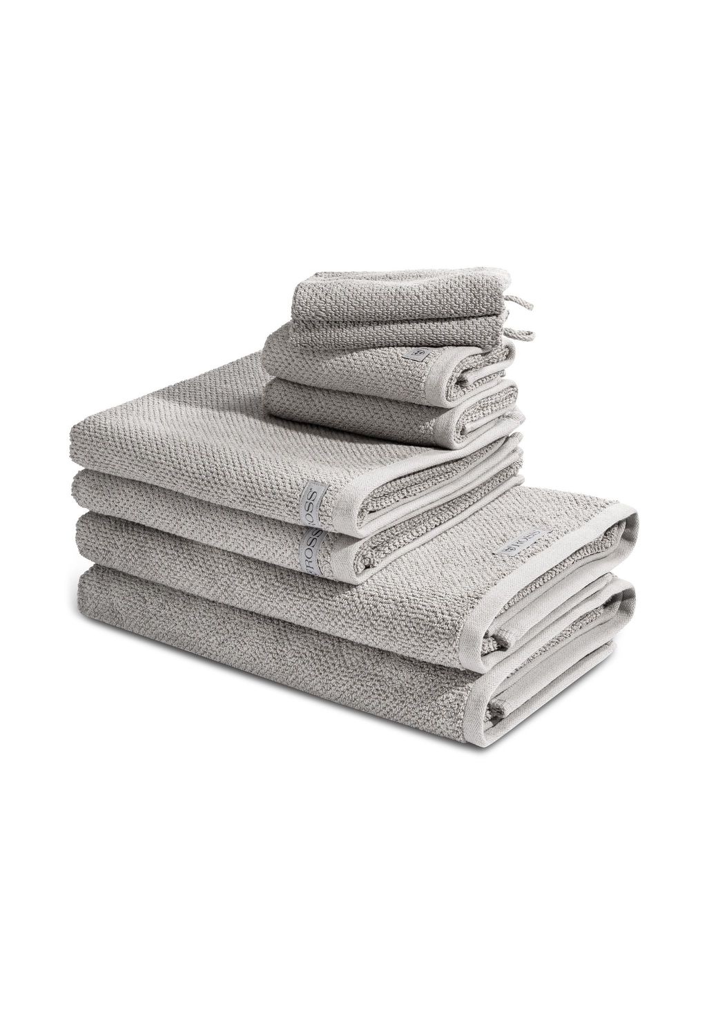 Особенности: 2 полотенца для рук (50 x 100 см), 2 банных полотенца (70 x 140 см), 2 гостевых полотенца (30 x 40 см), 2 варежки для мытья (16 x 22 см)