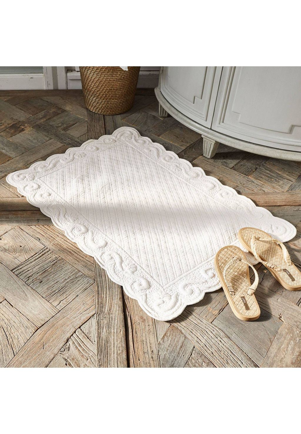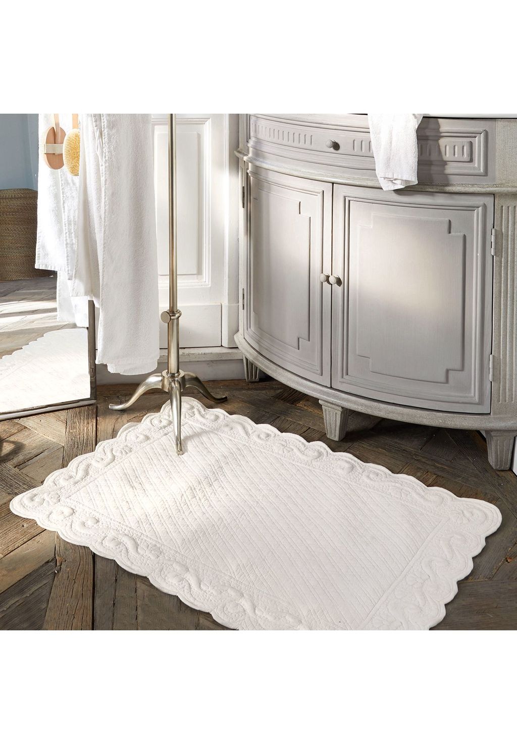Описание товара: Стильный аксессуар для ванной комнаты. Мягкий узор и волнистые края характеризуют его вневременную элегантность. Нескользящая латексная подложка. Исключительно красивый текстиль для ванной, идеально сочетающий в себе стиль и комфорт. Благодаря художественной вышивке в тон и декоративным волнистым краям он добавит элегантный акцент любому полу. Натуральное качество хлопка делает этот аксессуар для дома приятно мягким и долговечным, а нескользящая нижняя сторона с латексным покрытием обеспечивает устойчивое положение.