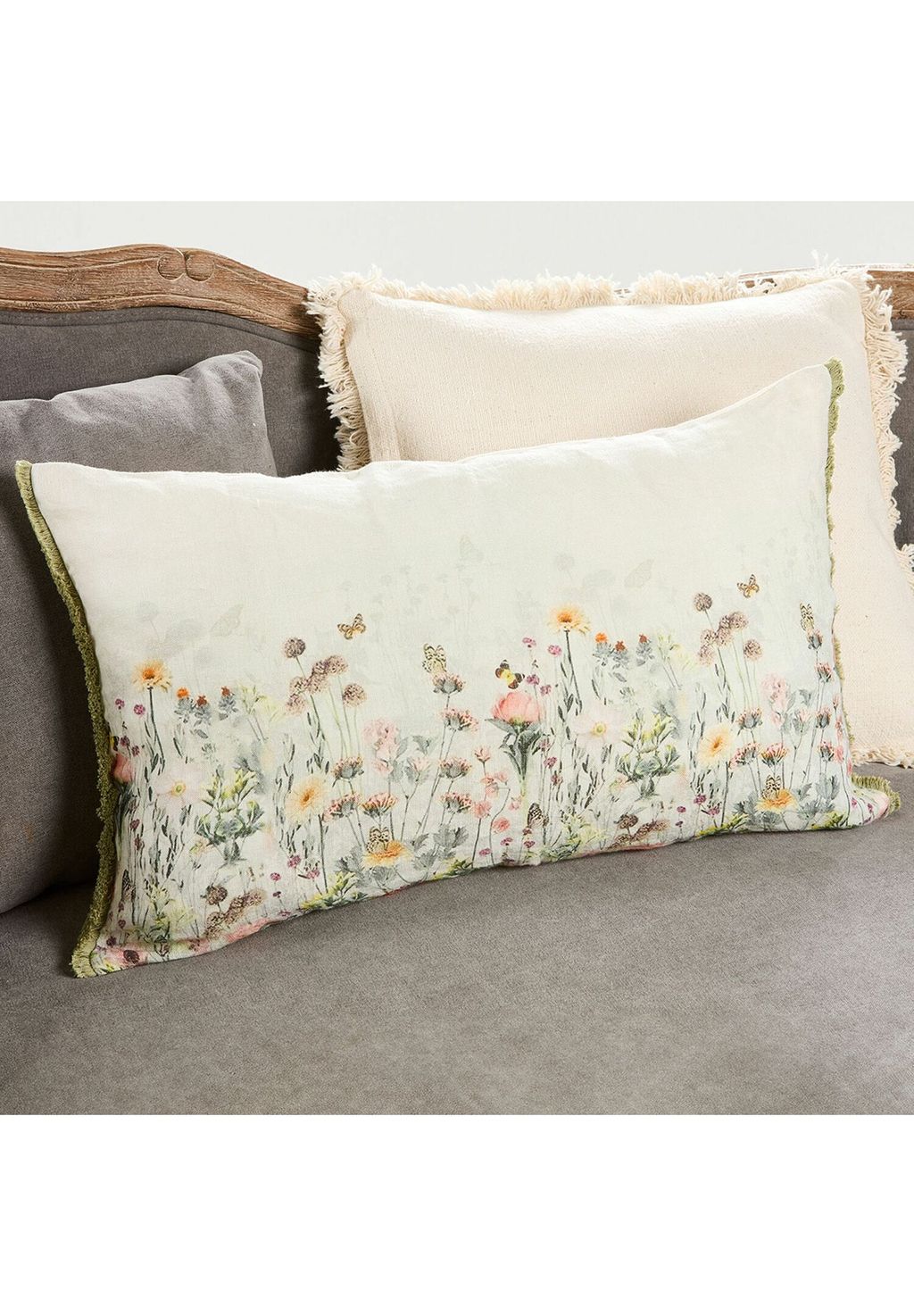 Описание товара: 100% лен спереди придаёт естественное очарование. С любовью напечатанный красочный цветочный узор. Бахрома по краям гармонично дополняет дизайн. Эта очаровательная наволочка для подушки гармонично сочетает в себе натуральные материалы, такие как лён и хлопок. Нежный цветочный узор спереди стильно дополняется бахромой. Идеально подходит для создания тёплой и уютной атмосферы в вашем доме.