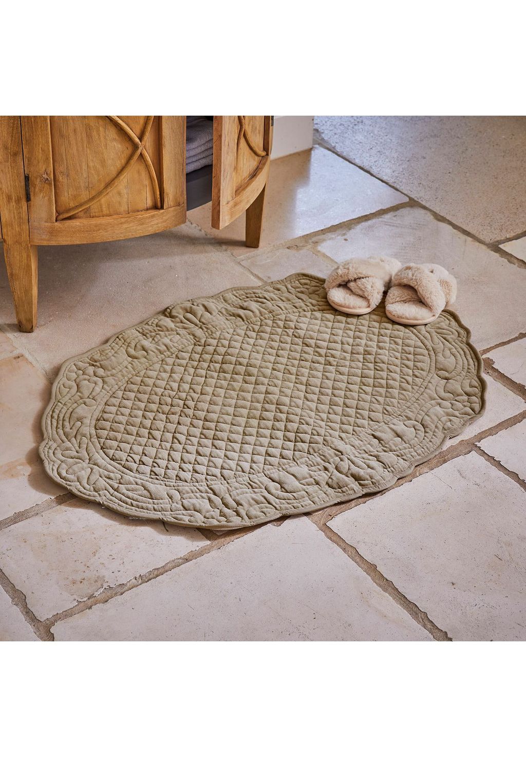 Описание товара: Сказочный бархат под ногами – мягкий и очаровательно стёганый. Ностальгия по ванной: с игривой цветочной каймой с нежным орнаментом. Остаётся там, где должен – благодаря нескользящей изнанке. Этот коврик для ванной с цветочным рисунком и стёганой поверхностью создаёт романтическое настроение в ванной комнате. Бархатистая поверхность приятна на ощупь и создаёт ощущение уюта, когда ступаешь босиком. Благодаря противоскользящему покрытию коврик надёжно держится на месте – стильный и функциональный одновременно.