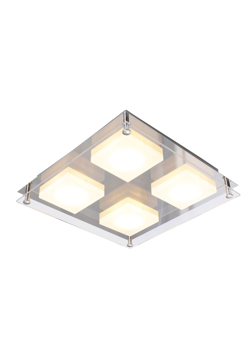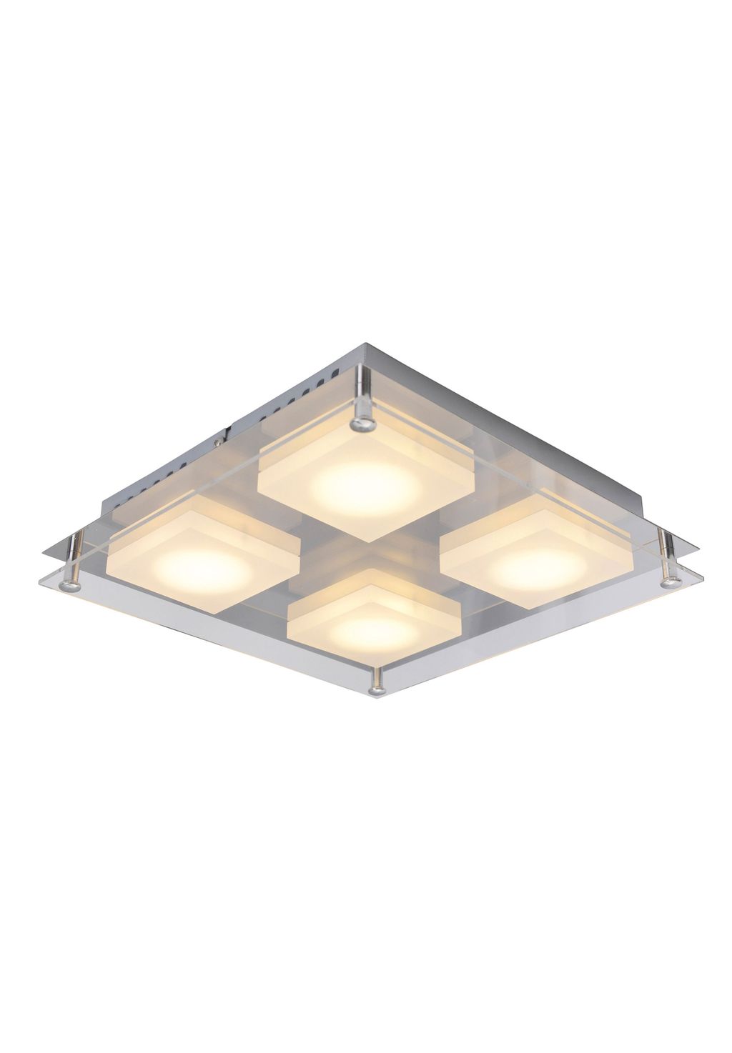 вкл. 4 светодиода 2700 К 1280 лм всего 16 Вт Класс энергоэффективности G IP 20 SK I Размеры: 24 x 24 см, высота: 4,7 см Материал: нержавеющая сталь, акрил Цвет: хром Цвет света: теплый белый
