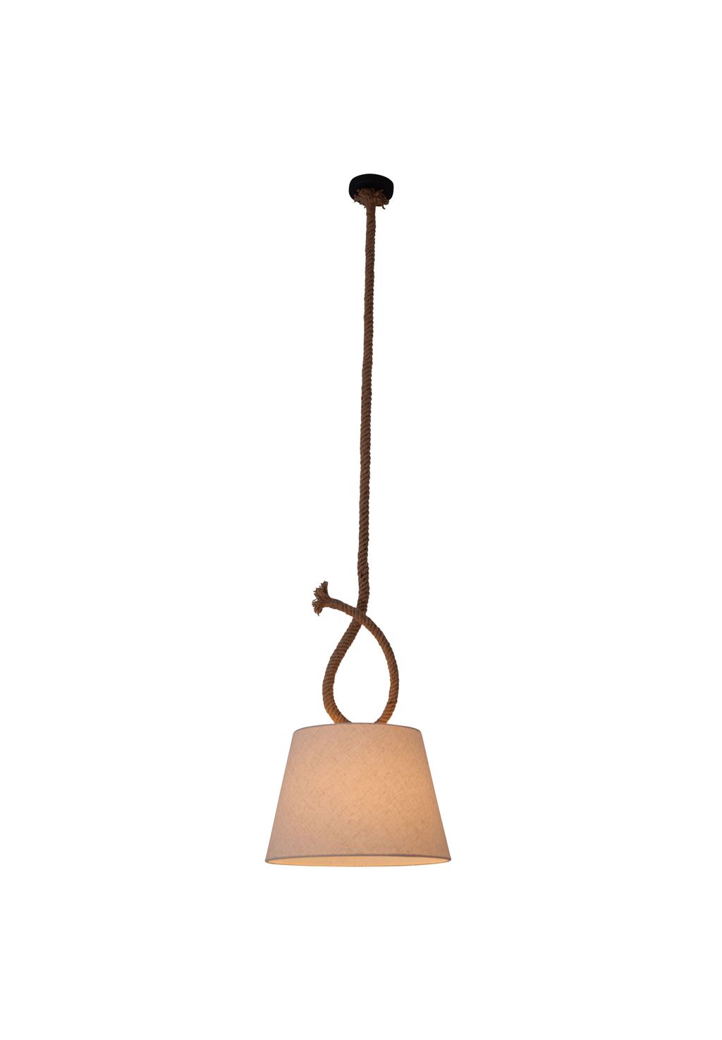 Подвесной светильник имеет диаметр 35 см, высоту 145 см и ширину 35 см. Он изготовлен из металла и текстильного материала в натуральном цвете. Стиль кантри идеально вписывается в деревенский вид и придает любой комнате уютную атмосферу.