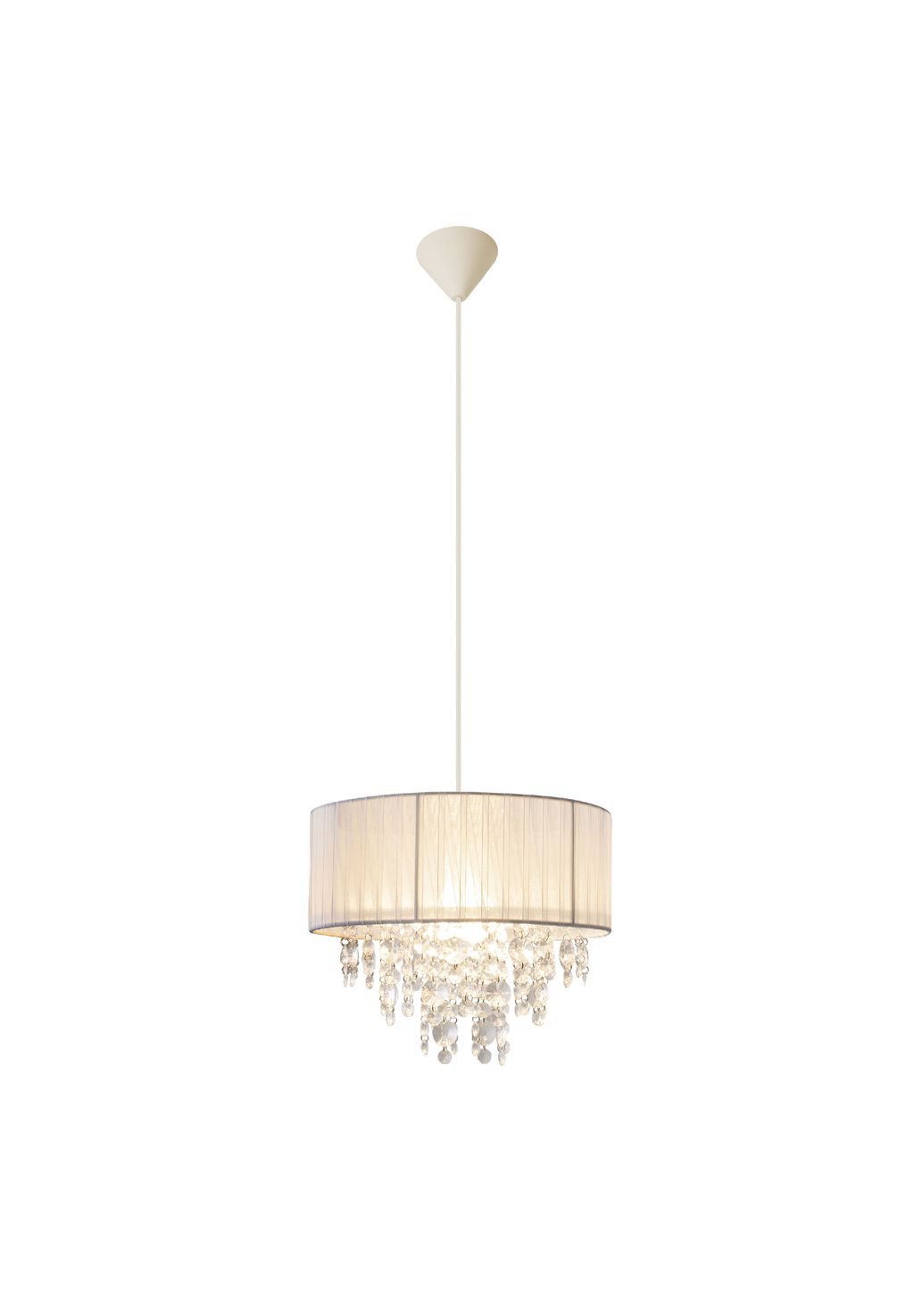 1x E27 макс. 40 Вт IP20/SKII 230 В ~ 50 Гц без высоты лампочки: 24 см; d: 30 см с маятником: белый - 80 см Материал: металл, пластик, текстиль (100% полиэфирные волокна) Цвет: серый, прозрачный