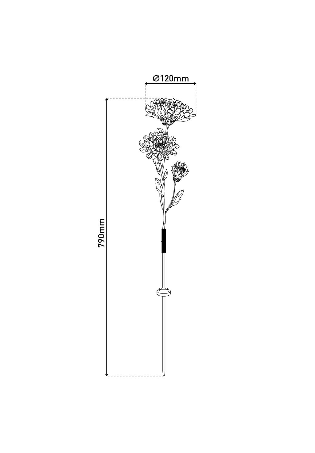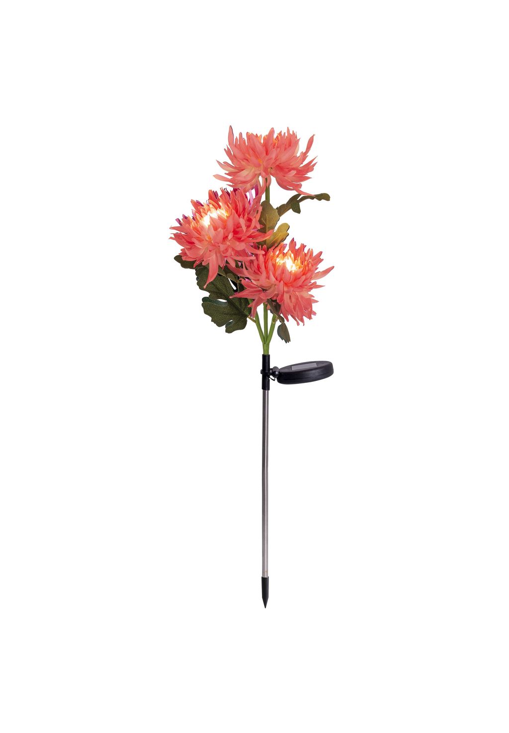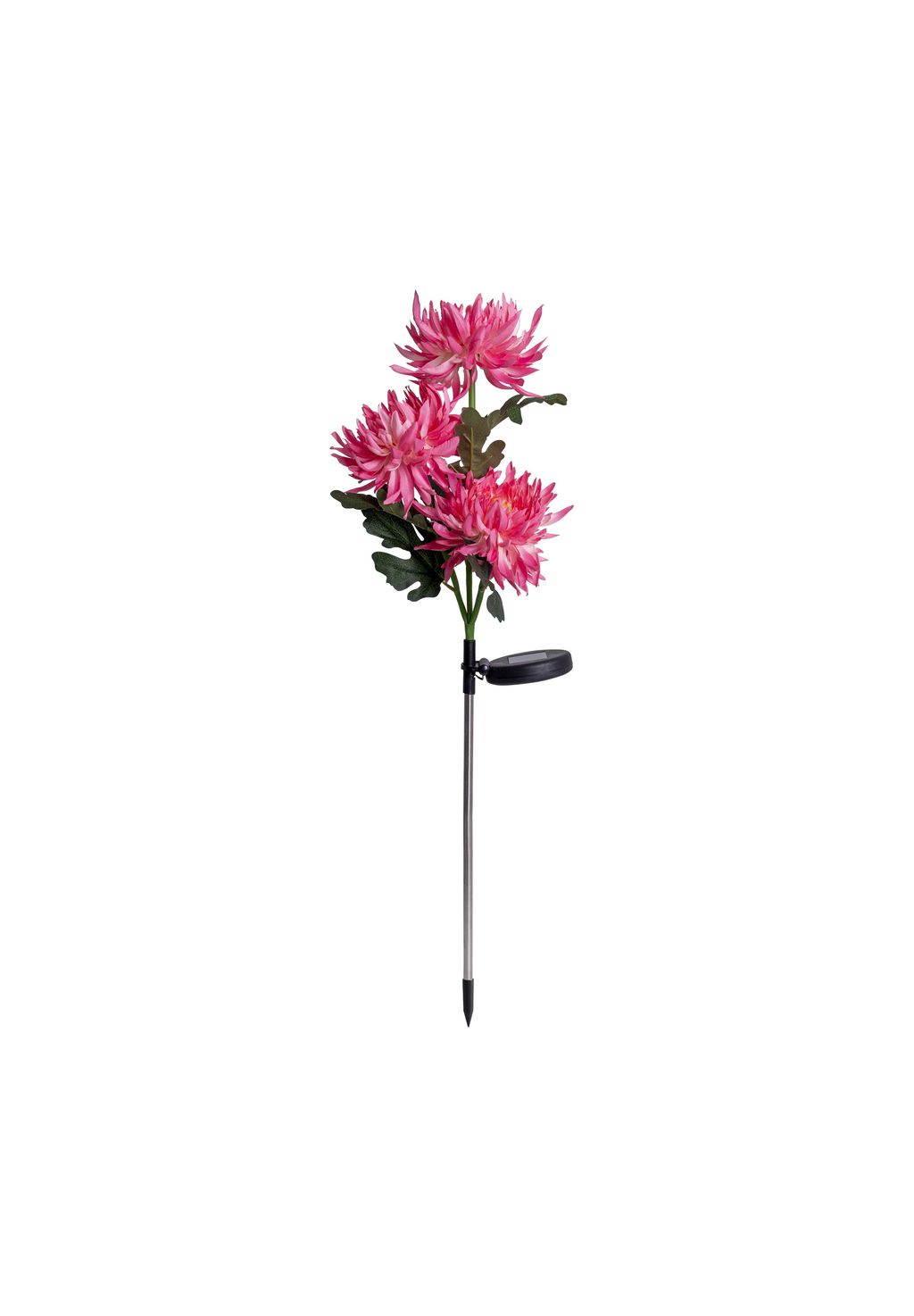 В комплекте 3 светодиода Время освещения после зарядки: 6-8 часов Солнечная панель: ширина: 10 см, в комплекте 1 аккумулятор Ni-MH/AA/300 мАч/1,2 В IP44/SKIII Общая высота: 79 см Абажур: 3 цветка - Ø: 12 см каждый Материал: текстиль, нержавеющая сталь, пластик (нержавеющая сталь/шелк/ПВХ) Цвет: розовый, зеленый Цвет освещения: белый В комплекте Переключатель