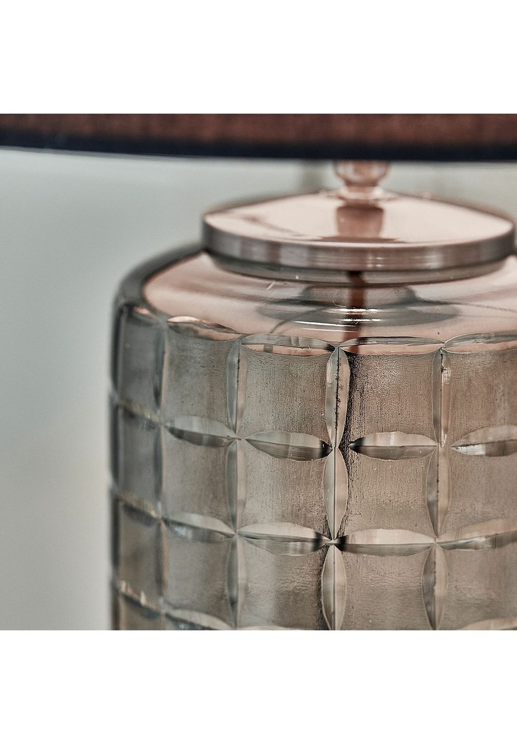 Описание товара: Выдувное стекло с ромбовидным узором ручной огранки для уникального светового эффекта. Слегка серый оттенок и матовая текстура. Прочный тканевый абажур дополняет современный дизайн. Эта настольная лампа впечатляет своим современным дизайном и выдувным стеклом, которому придана особая структура благодаря вырезанным вручную узорам. Слегка серый оттенок стекла создает стильные световые блики, которые улучшают атмосферу любой комнаты. Черный хлопковый абажур гармонично дополняет общий вид и придает лампе нотку сдержанности и изысканности.
