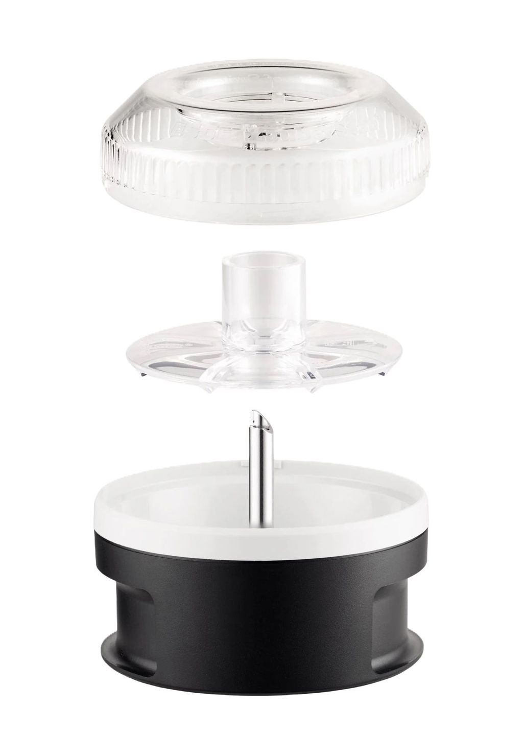 Комплект поставки: 1 ручной блендер, 1 многофункциональное лезвие, 1 диск для взбивания, 1 измельчитель с диском для порошка, 1 подставка