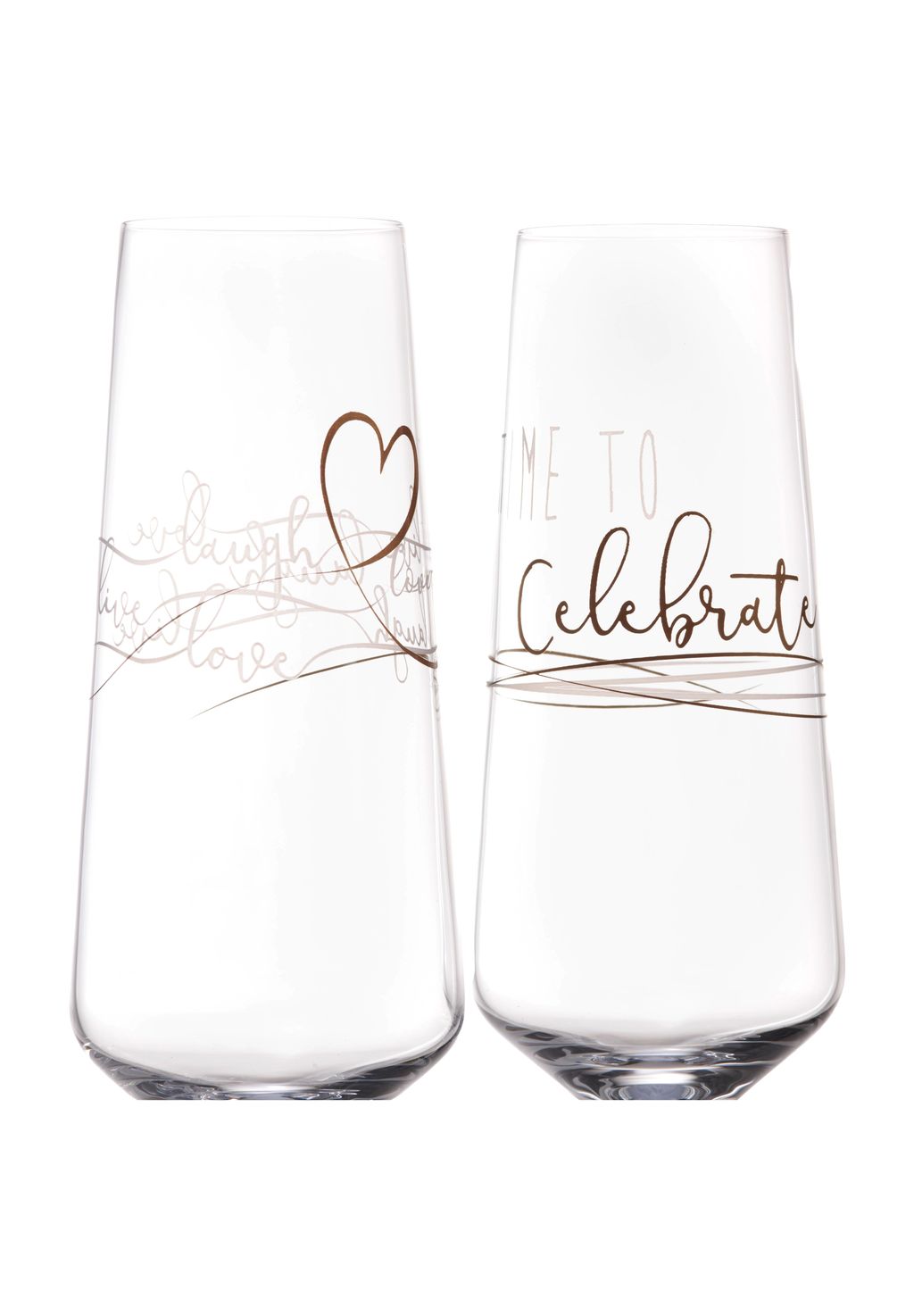 Описание товара: Два бокала украшены вдохновляющими фразами «смейся, живи, люби» и «Время праздновать».