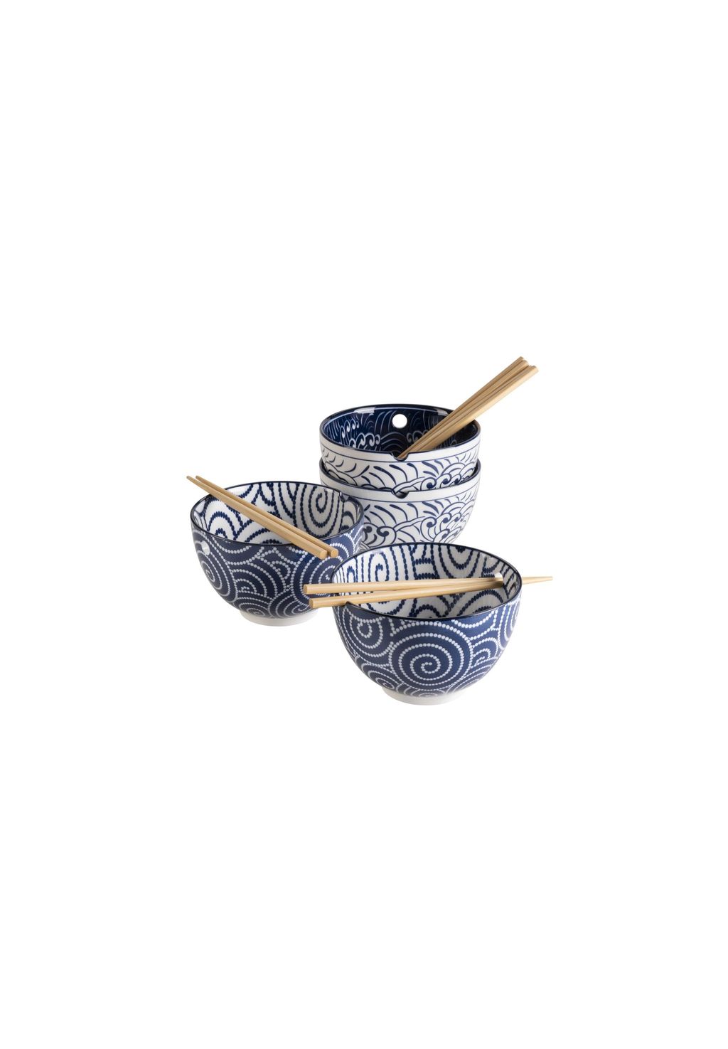 Особенно практично: в набор из 4 или 8 мисок входят элегантные бамбуковые палочки для еды.