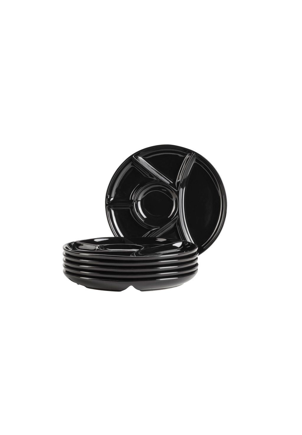 Круглые тарелки с 6 практичными отделениями разного размера для подачи мяса, гарниров, подливок и соусов отдельно.