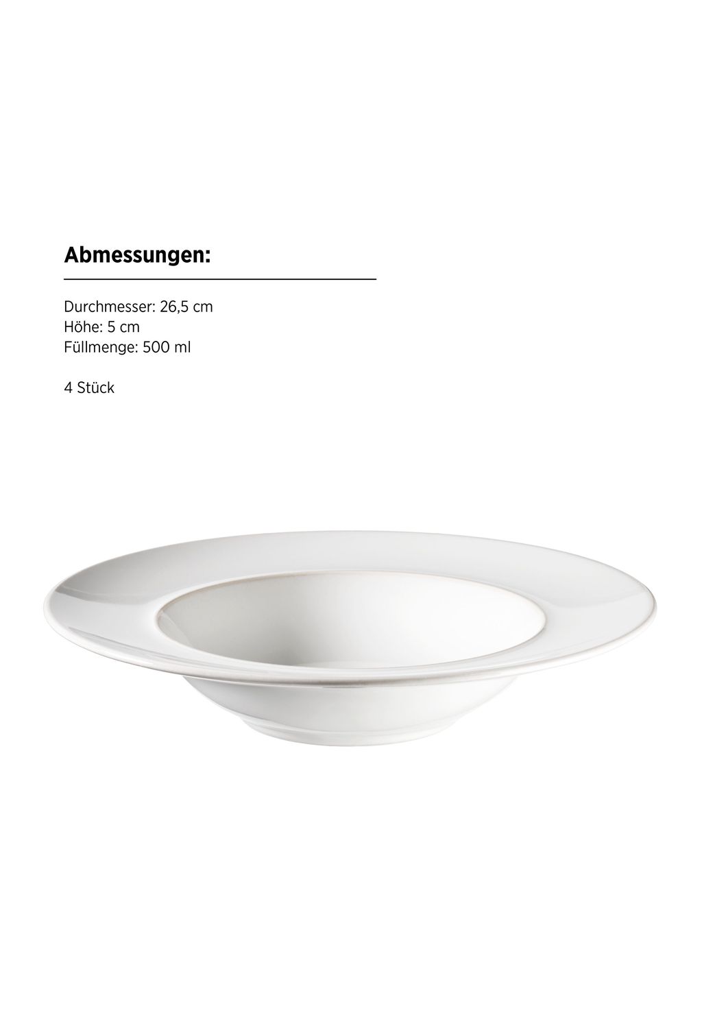 Особенности: Этот набор состоит из четырех тарелок для пасты (Ø 27 см), изготовленных из прочной керамики.