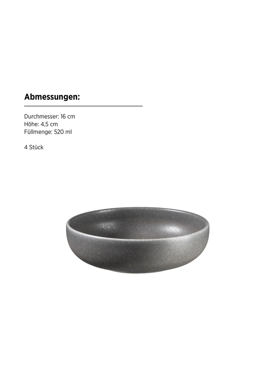 Особенности: Этот набор мисок состоит из 4 мисок (Ø 16 см) из прочной керамики, идеально подходящей для салатов, супов или гарниров.