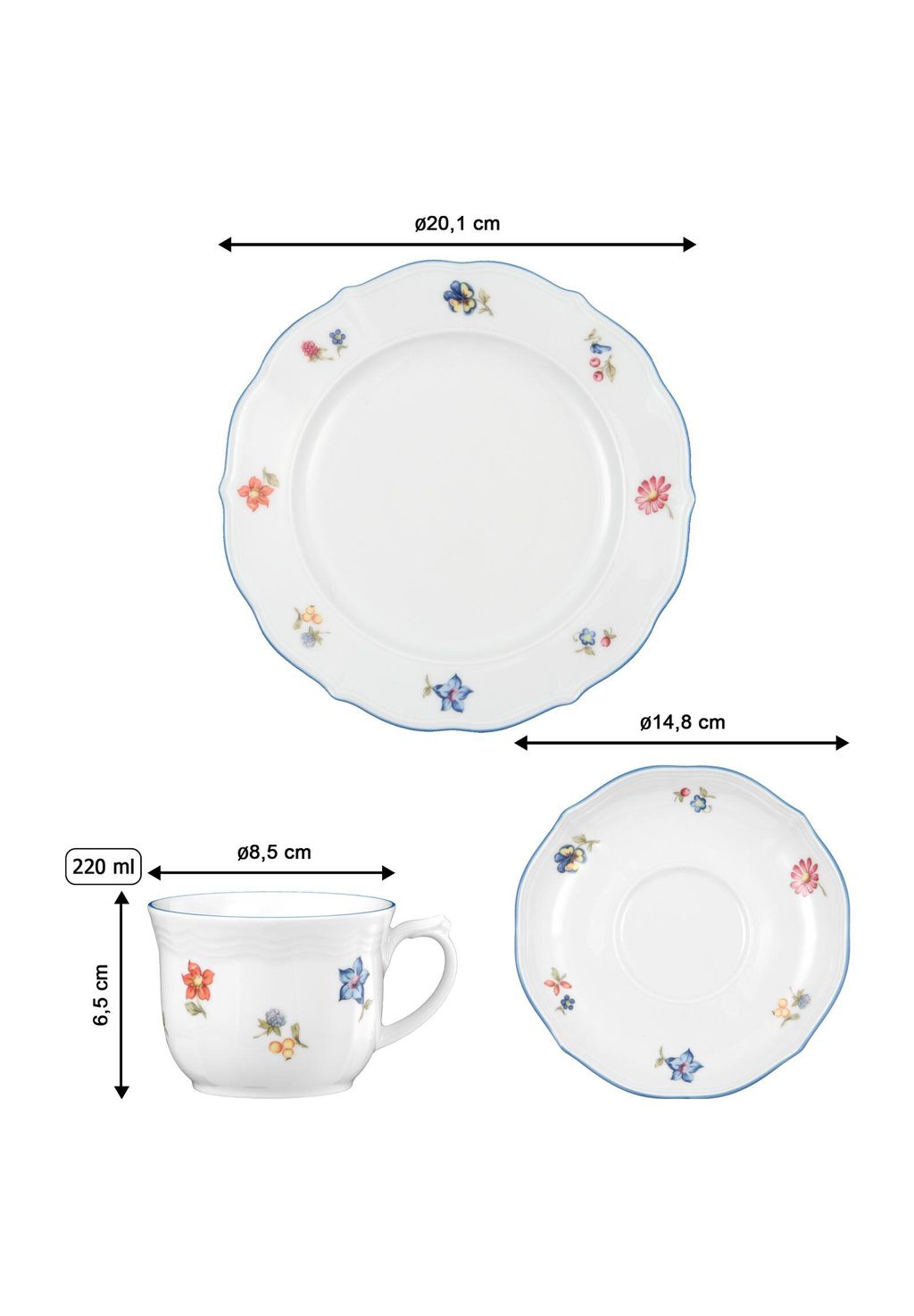 Гармоничное соотношение размеров и практичный дизайн: Продуманные размеры для комфорта и эстетики: Чашки емкостью 220 мл, тарелки диаметром 20,1 см — идеально подходят для завтрака, бранча или кофе-брейков.