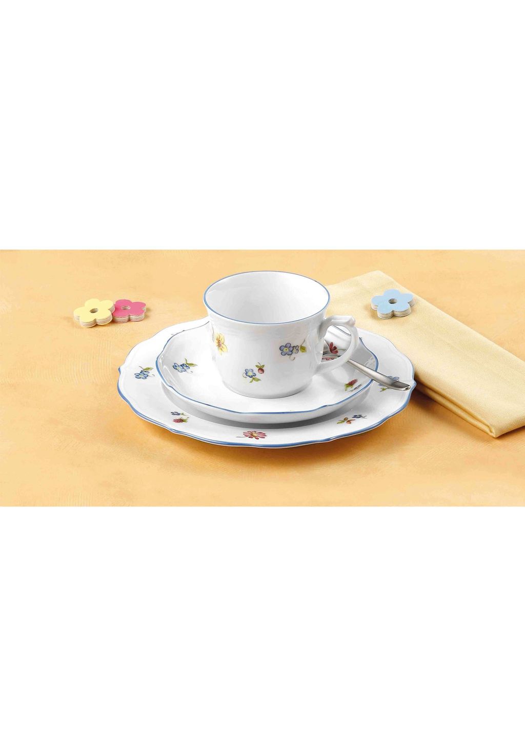 В коллекции Sonate от Seltmann Weiden летняя свежесть сочетается с классическими элементами дизайна. Незабудки, ромашки, маргаритки, лютики и цветущий клевер создают яркий контраст с белым фарфором и обрамлены нежным синим ободком. Позвольте себе поддаться очарованию этой игривой ностальгии и превратите свой стол в красочный луг, усыпанный цветами.