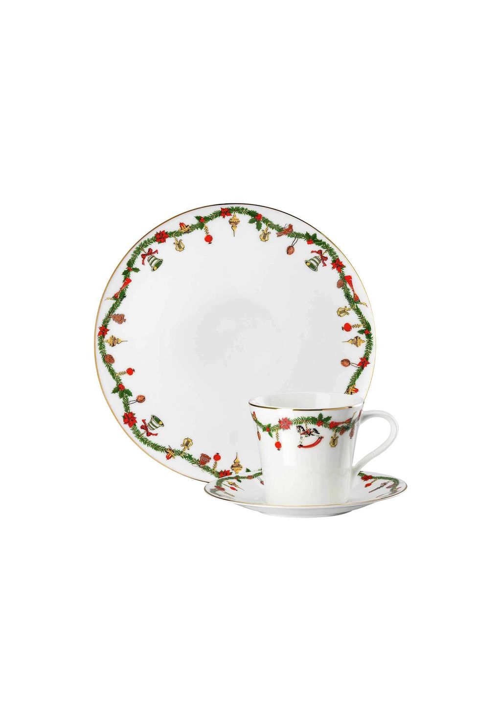 Набор из 3 предметов на одну персону — Содержит тарелку для торта (Ø 21,5 см), кофейную чашку (280 мл) и подходящее блюдце (Ø 16,1 см) — идеально подходит для праздничного кофе-брейка в период Адвента.