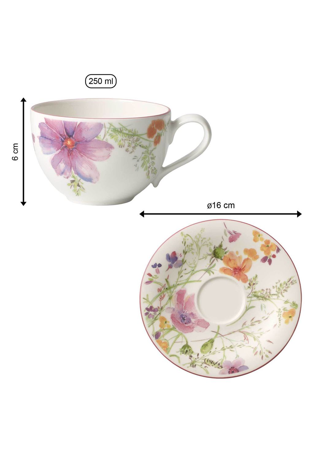 Чашка керамическая Villeroy & Boch Mariefleur Basic с блюдцем, 250 мл