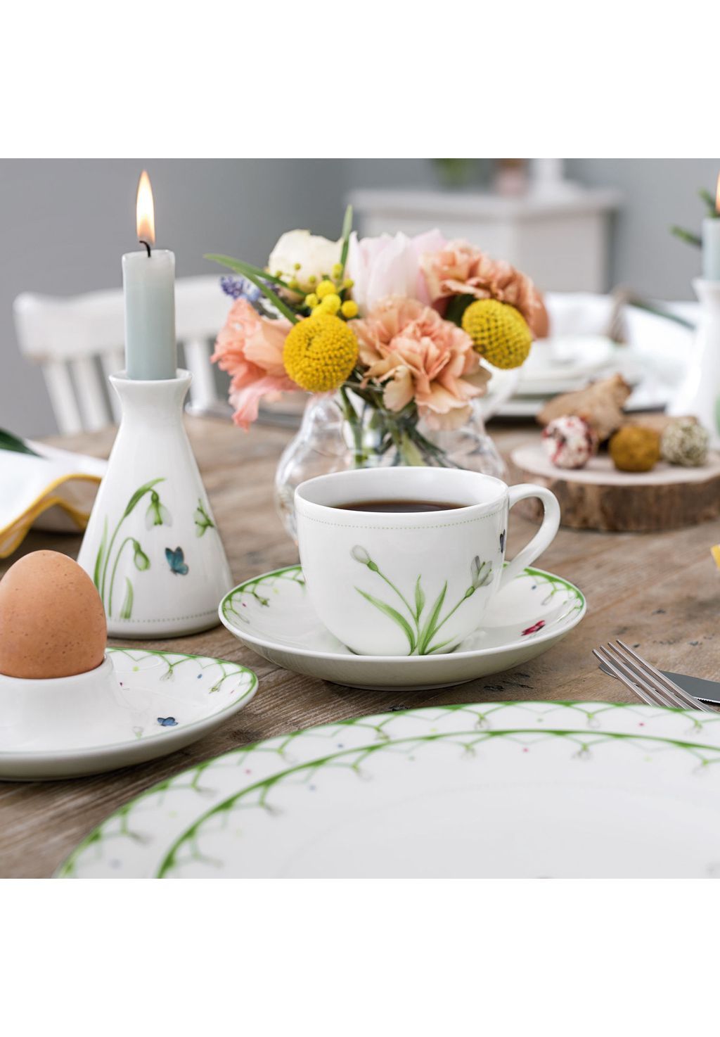 Неподвластная времени коллекция Colorful Spring - “Цветущая весна” будет радовать вас круглый год. Главные герои на изделиях красивой формы — нежные подснежники и яркие бабочки. Они придают коллекции жизнерадостные оттенки и скрашивают каждый скучный момент. Кофейная чашка с рисунком подснежника от Colorful Spring идеально подходит для того, чтобы насладиться свежесваренным кофе в надлежащем стиле. Позвольте вашему дому расцвести.
