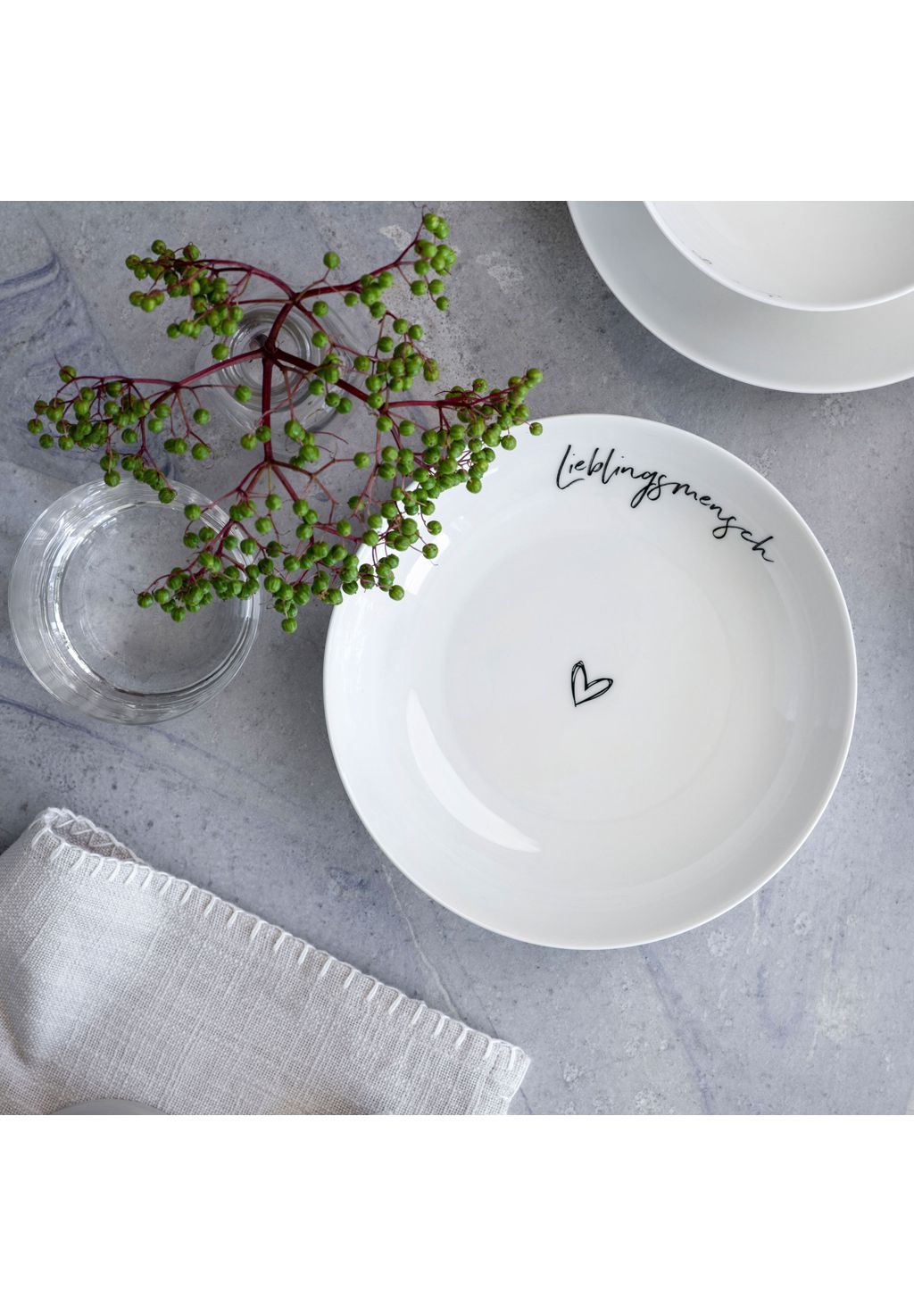 КОМПЛЕКТ ПОСТАВКИ: 1 плоская миска Statement, Любимый человек, размер: диаметр 18 см, материал: фарфор премиум-класса, цвет: белый.