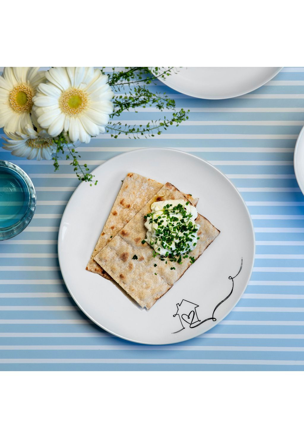 Столовая посуда с одной стороны украшена простой надписью. Благодаря классическому белому фарфору она прекрасно сочетается со многими коллекциями и предлагает множество возможностей для комбинирования.