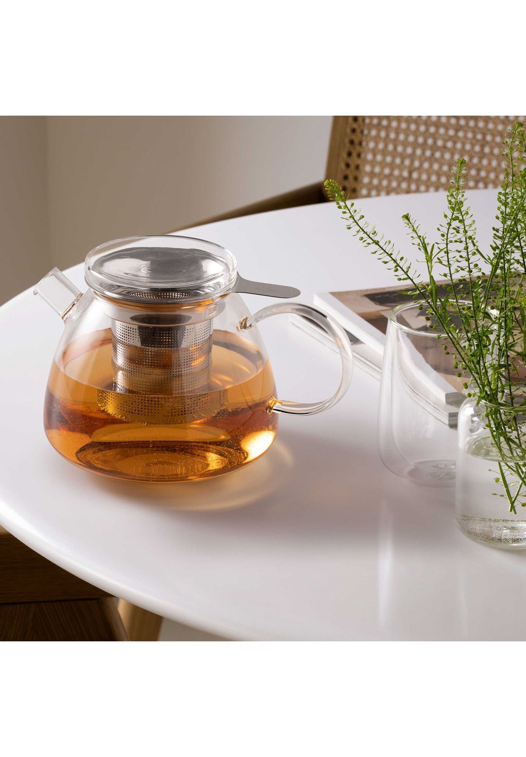 Выпуклый стеклянный чайник с ручкой для стильного наливания горячих напитков, практичное ситечко из нержавеющей стали подходит для приготовления ароматного чая