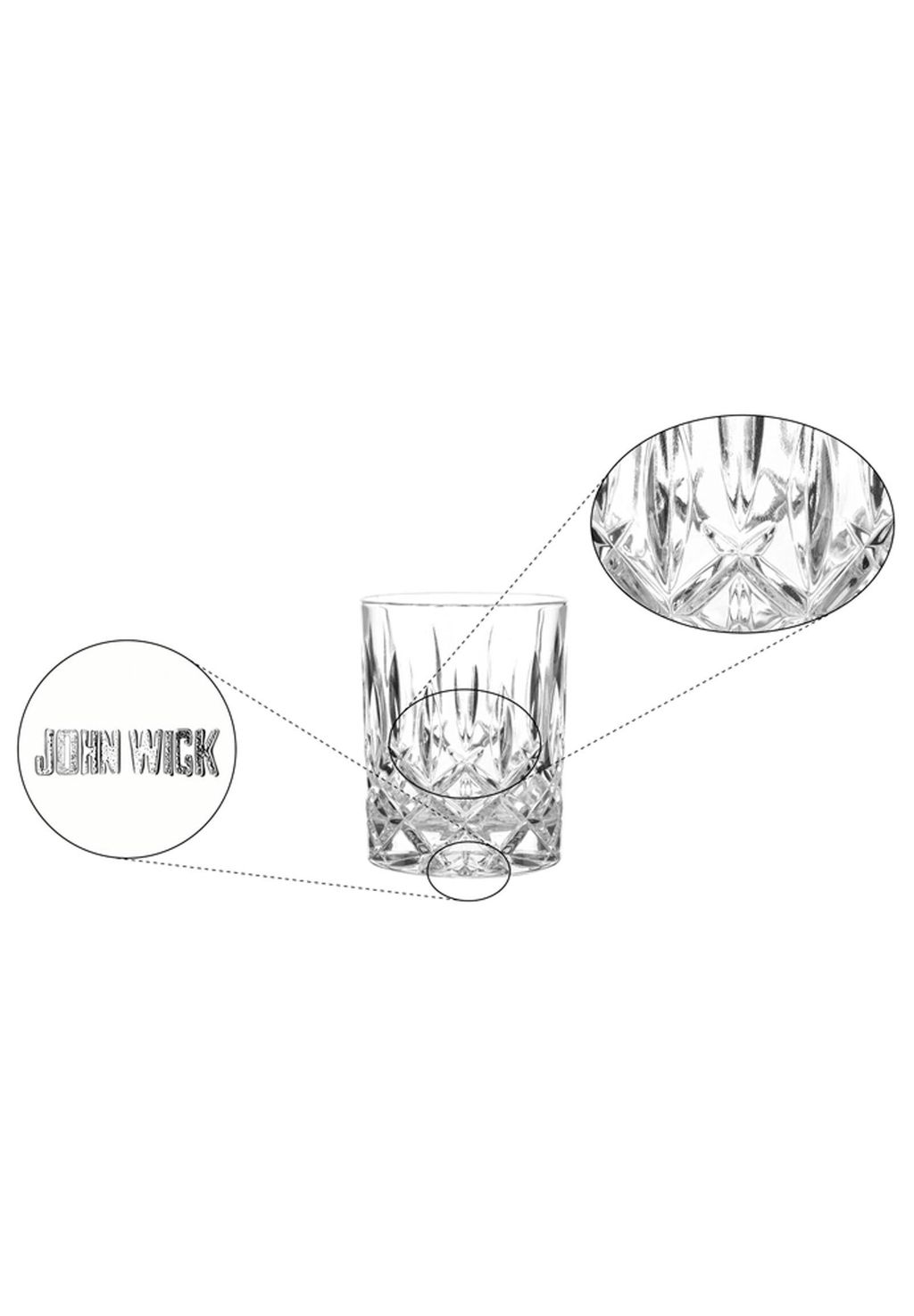 Надпись JOHN WICK на основании стакана — Особая деталь ждет вас, когда вы посмотрите в стакан: надпись JOHN WICK на основании делает этот набор настоящей изюминкой для кино вентиляторы.