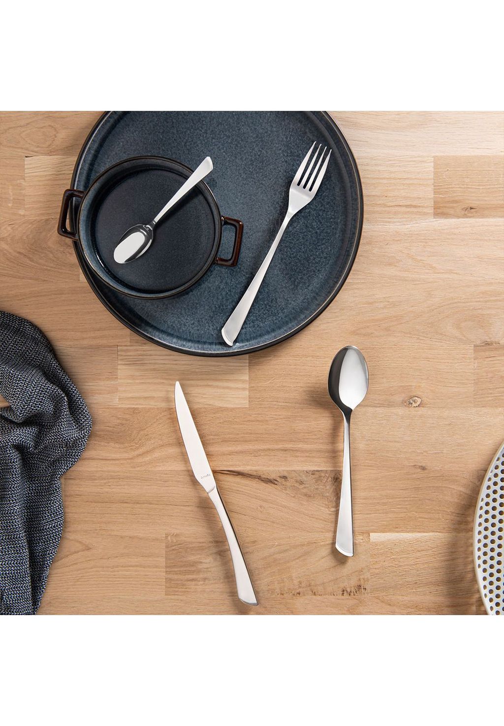 Описание товара: Модель Juno — это красивый современный набор столовых приборов с гармоничными изгибами и асимметричными линиями. Разработанный для повседневного использования, он удобно лежит в руке и имеет динамичный вид. 24 предмета. Нержавеющая сталь 18/0, зеркальная полировка.
