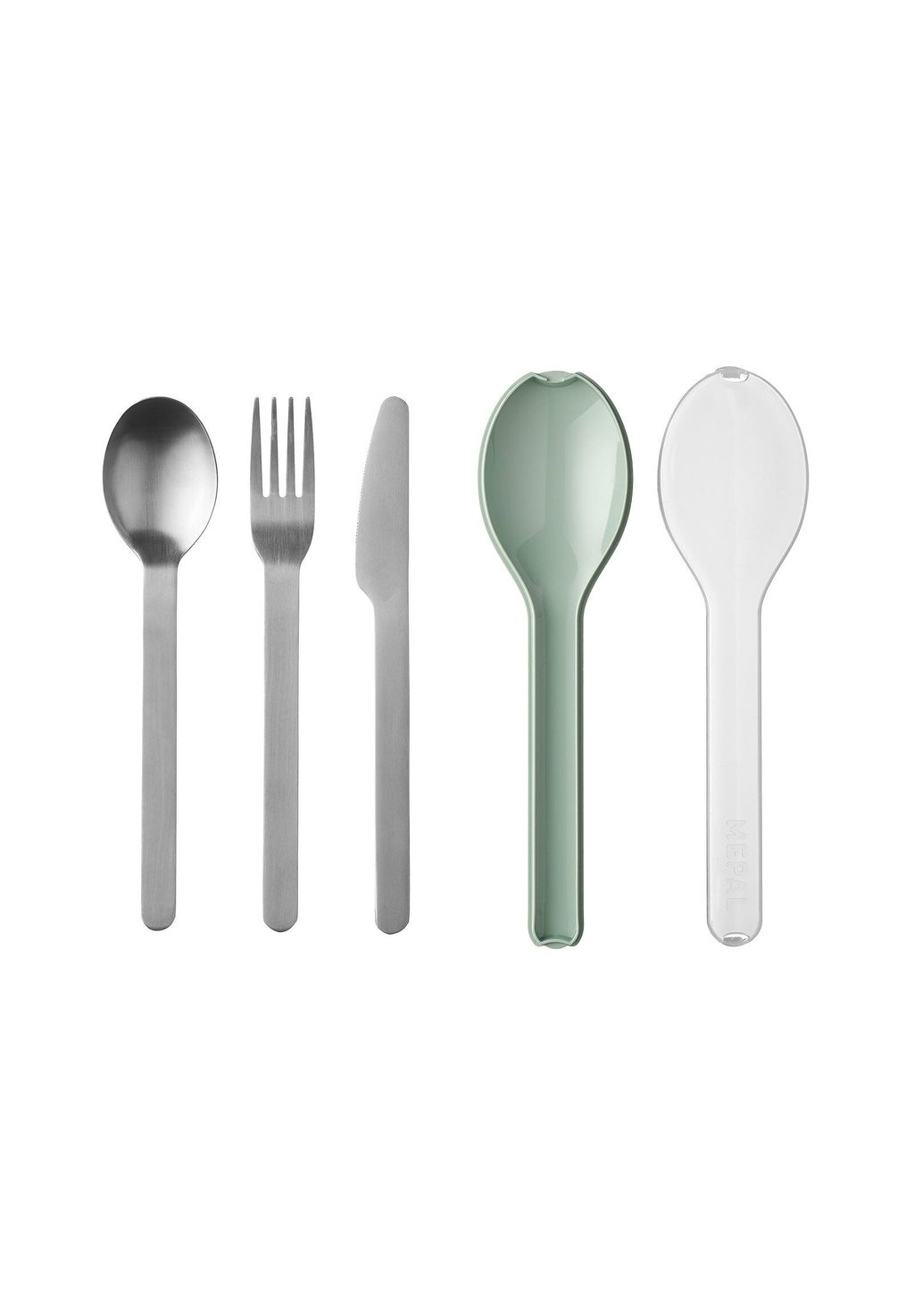 Особенности: НАБОР СТОЛОВЫХ ПРИБОРОВ НА ВЫНОС: Наслаждайтесь обедом где угодно с этим набором столовых приборов Ellipse от Mepal. Набор столовых приборов состоит из ножа, вилки и ложки и поставляется в контейнере.