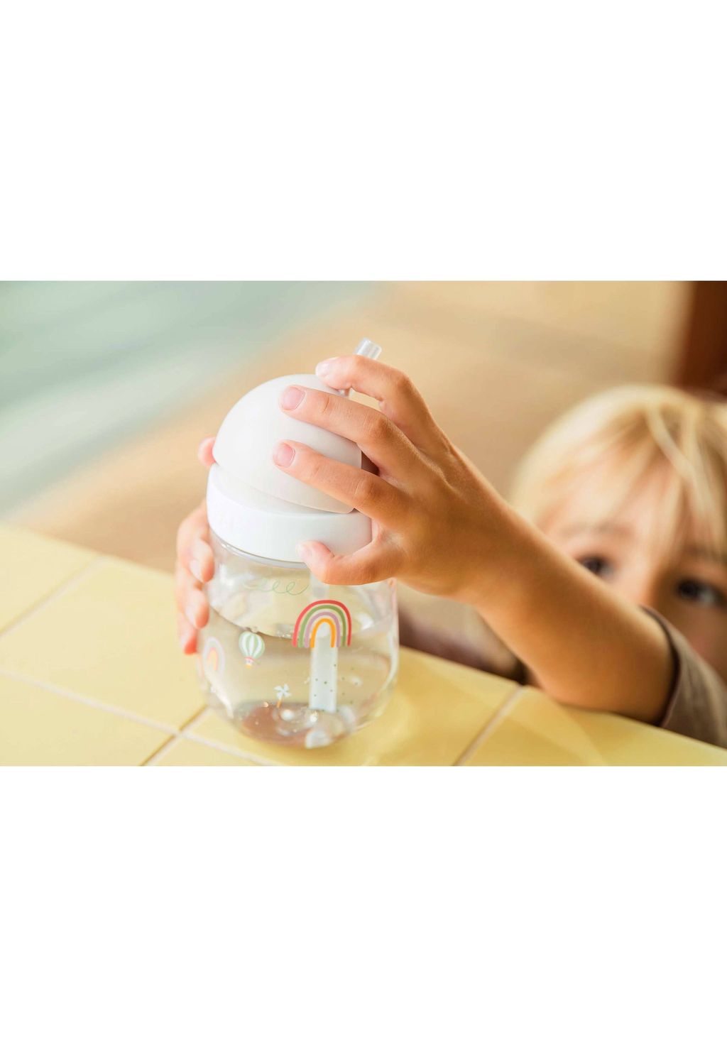 Чашка с трубочкой Mepal Mio 300 мл в цвете «Солнце и Радуга» — идеальный спутник в дороге. Гигиеничная и на 100% герметичная. Просто нажмите, и трубочка выскочит; ваш ребенок легко справится с этим сам! Чашка подходит для детей от 9 месяцев и способствует тренировке и развитию жевательных мышц. Чашка легко разбирается для очистки и даже выдерживает случайное падение. После использования чашку с трубочкой можно просто мыть в посудомоечной машине.