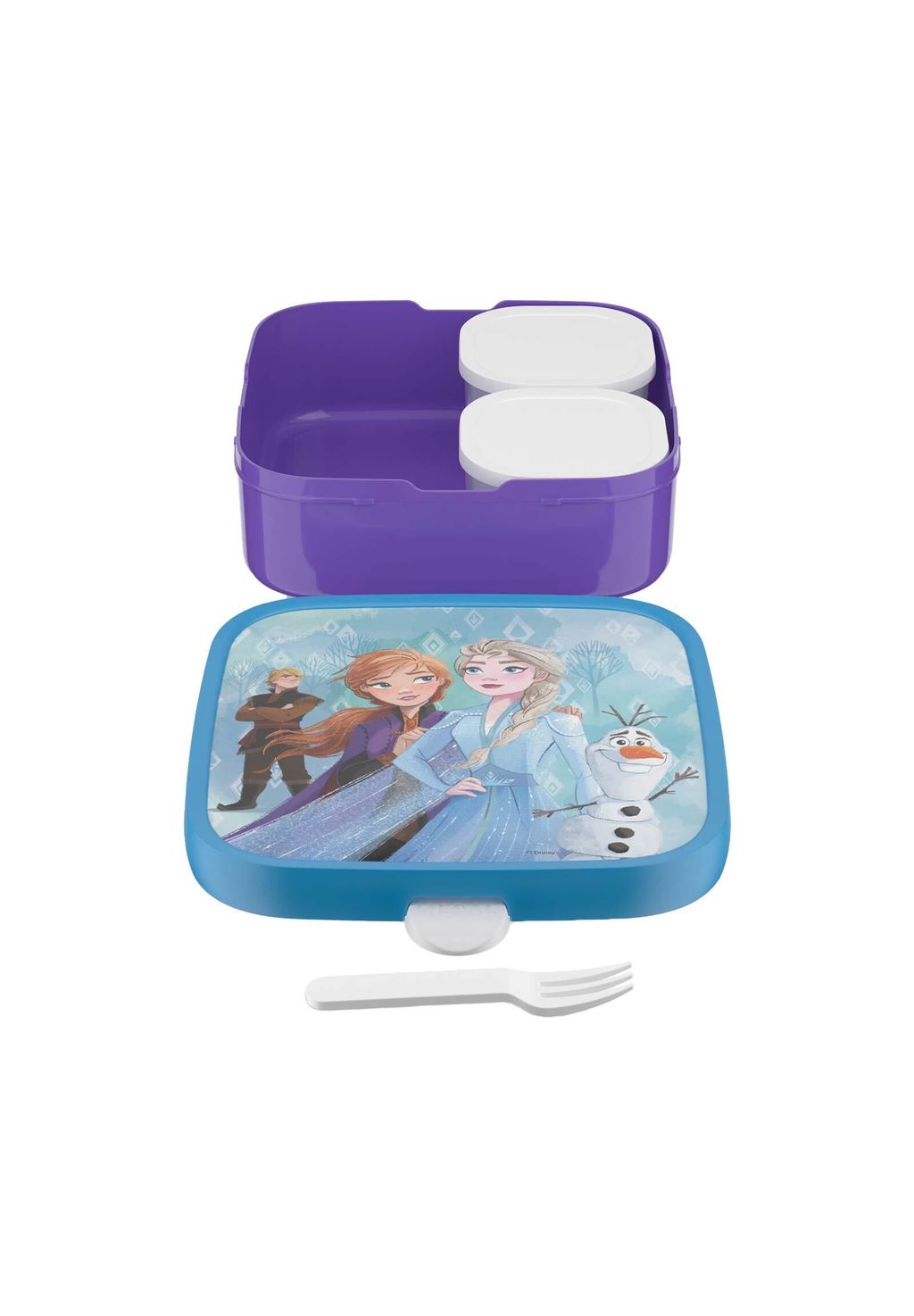 С удобной для детей вилкой — входящая в комплект маленькая вилка идеально подходит для кусочков фруктов, кубиков сыра или других закусок — идеально для использования в дороге.