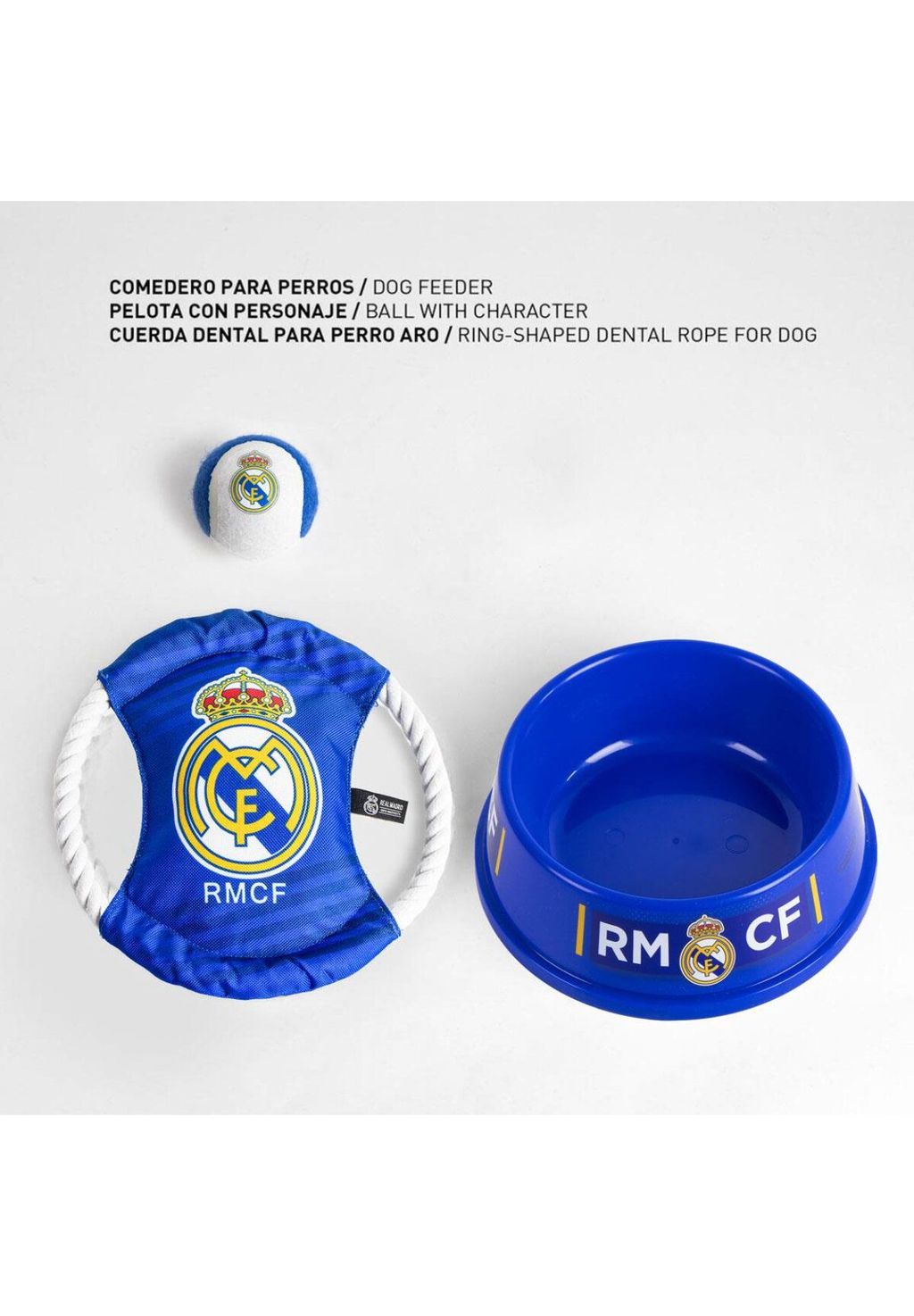 Описание товара: Идеальный приветственный набор для домашних животных в дизайне «Реал Мадрид» — идеально для новых владельцев собак, которые любят футбол. Включает миску и аксессуары для настоящих болельщиков.