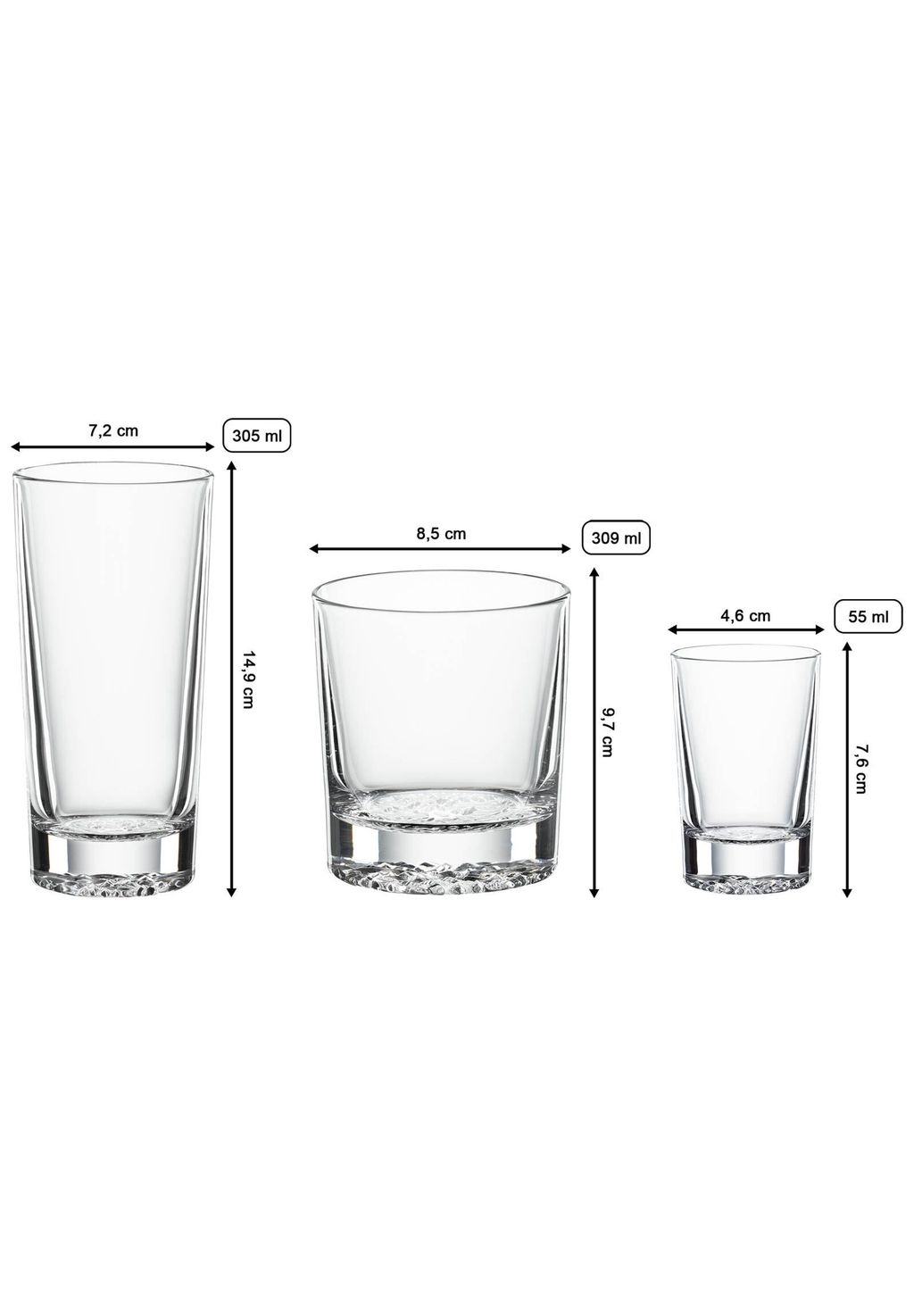 Различные стаканы позволяют идеально подавать виски, лонг-дринки и шнапсы, гарантируя наличие идеального стакана для любого случая.