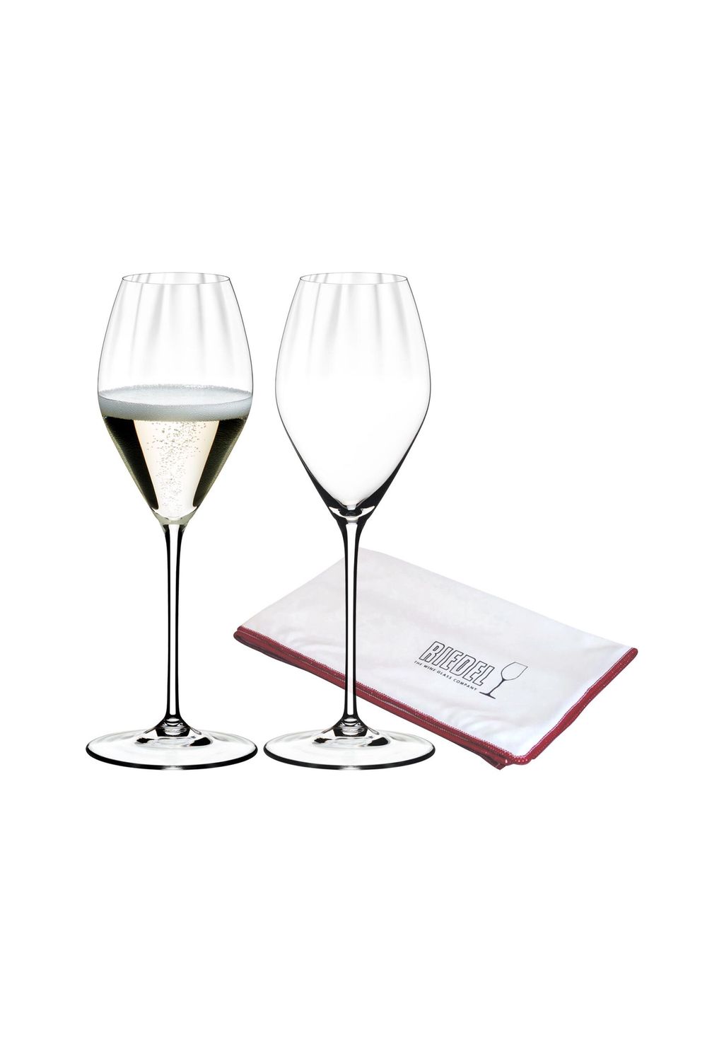 Описание товара: Набор из 2 бокалов для шампанского Riedel PERFORMANCE, включая салфетку для полировки.