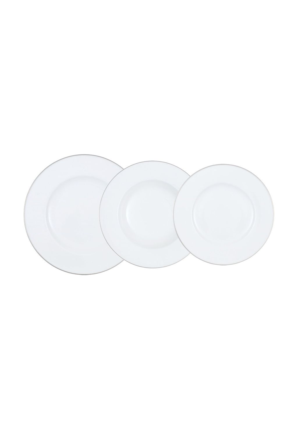 Комплект поставки: 1 набор тарелок Villeroy & Boch Anmut Platinum No. 1, 3 предмета, содержит: 1 обеденную тарелку (28 см), 1 суповую тарелку (25 см) и 1 тарелку для завтрака (23 см), материал: высококачественный костяной фарфор, цвет: белый