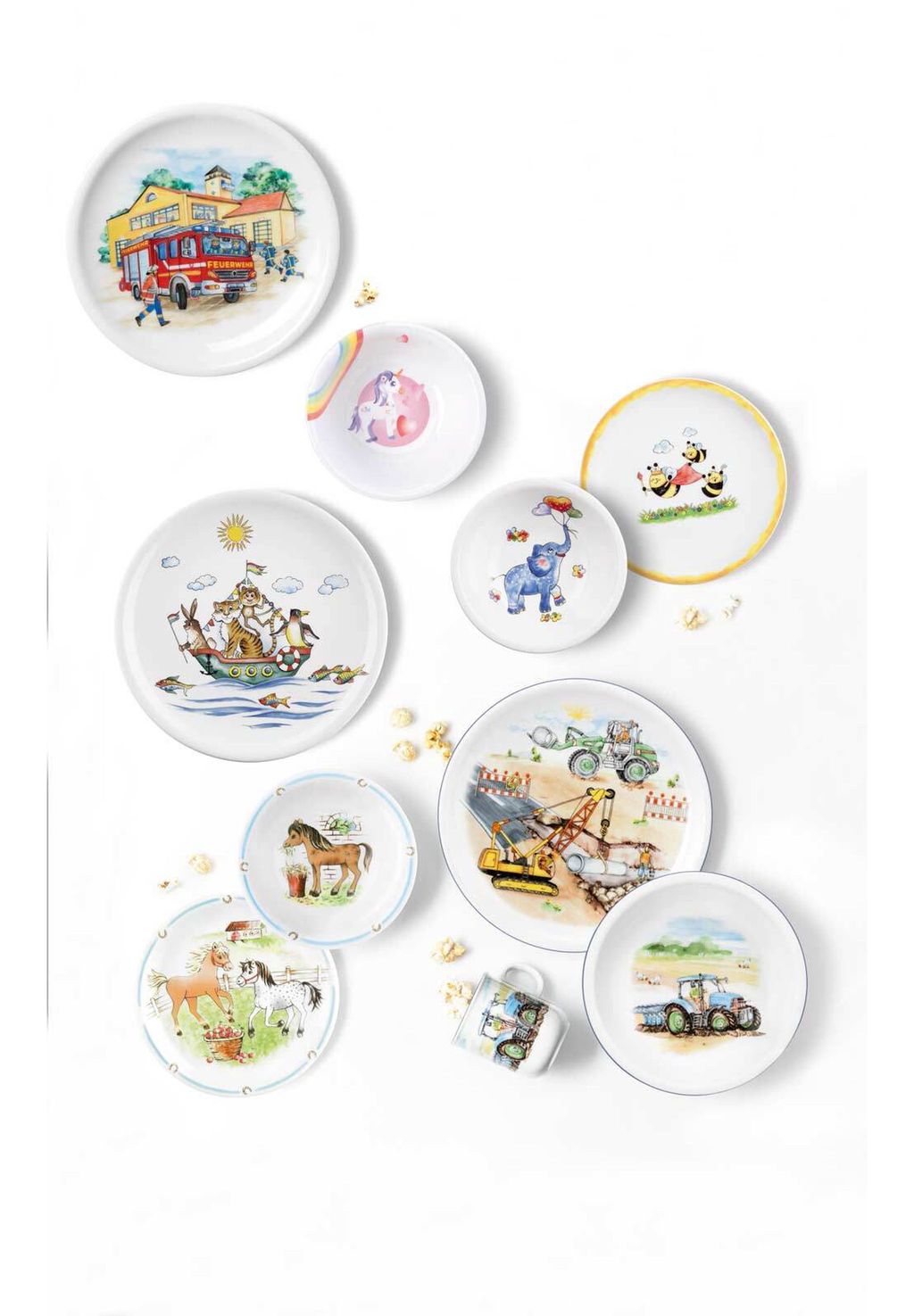 Серия детской посуды "Flinke Flitzer" от Seltmann Weiden приносит веселые приключения за обеденный стол. Забавные изображения животных, путешествующих на самых разных транспортных средствах — от грузовиков до вертолетов и кораблей — каждый предмет посуды поднимает настроение малышам. Веселые животные, такие как мыши-пожарные или еж-чемпион, сопровождают детей за едой и превращают каждое занятие в настоящее приключение. Простая круглая форма посуды серии "Flinke Flitzer" идеально подходит для маленьких детских ручек, а яркие, забавные мотивы превращают прием пищи в настоящее удовольствие. Будь то тарелка, кружка или миска — Nimble Flitzer станет идеальным спутником для любого приема пищи.