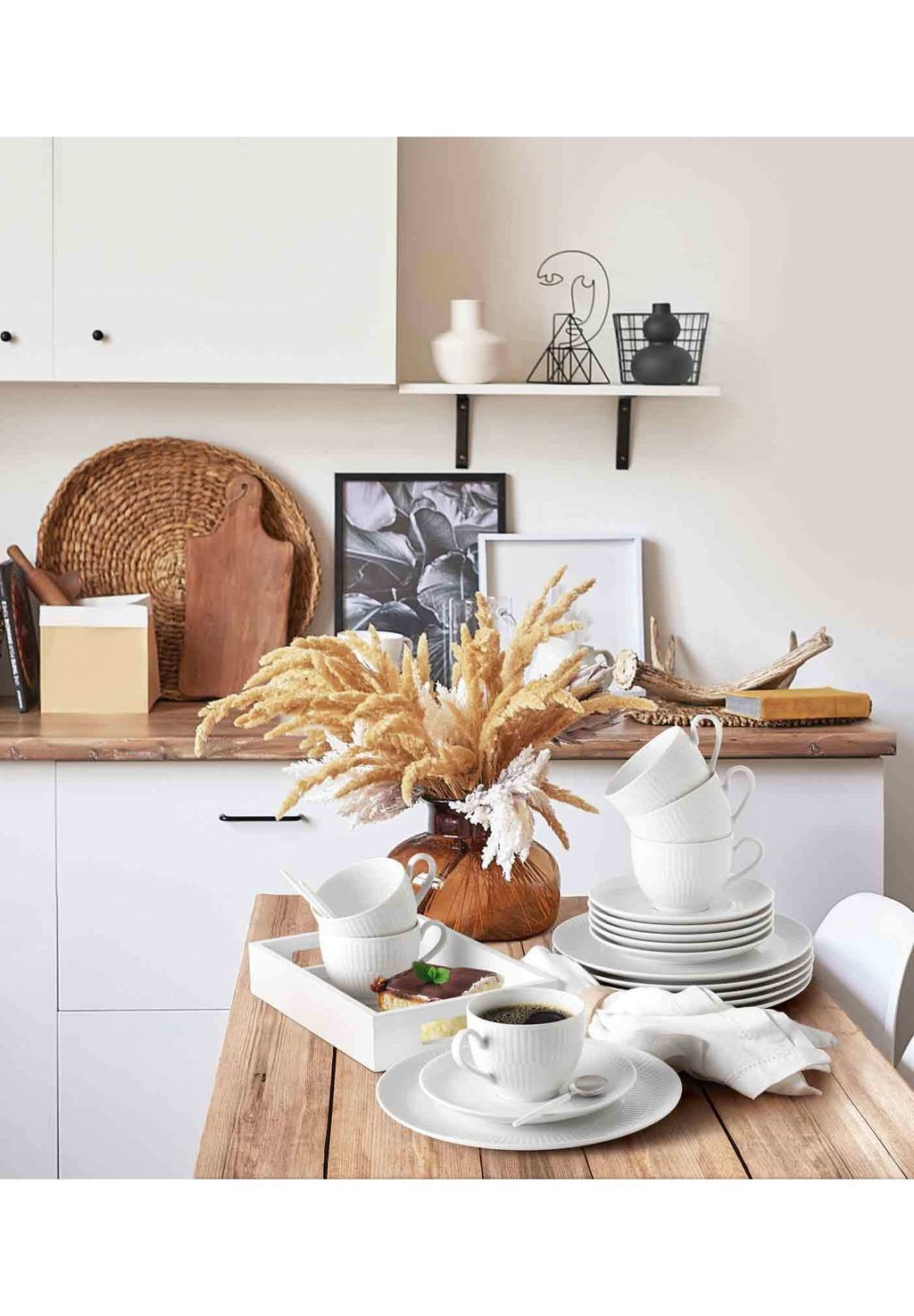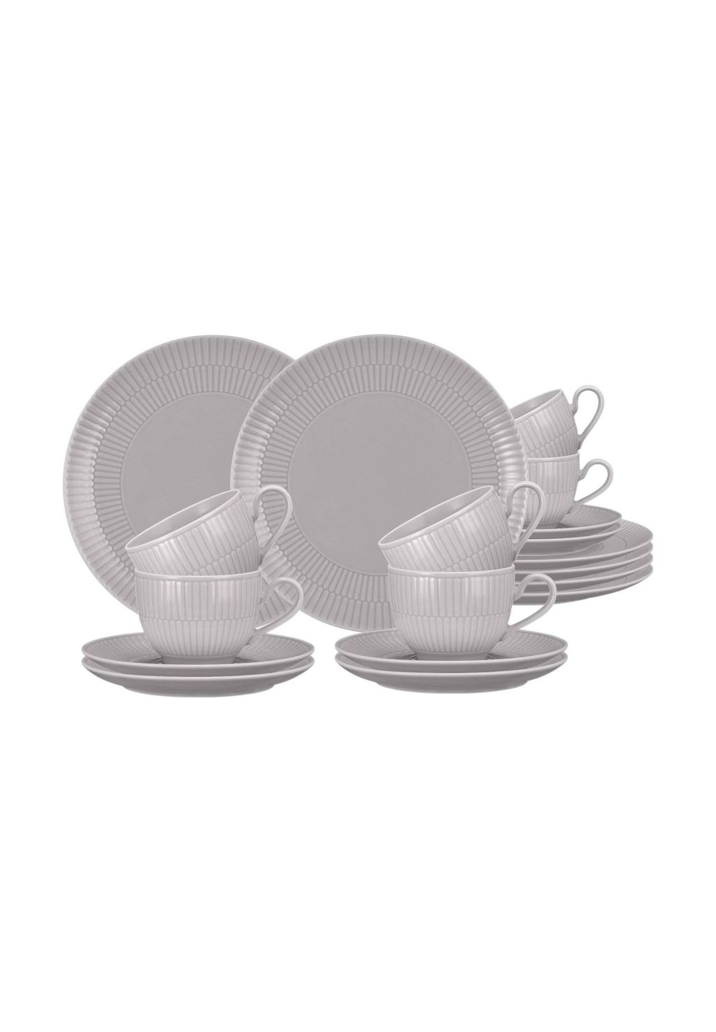 Особенности: Элегантный кофейный сервиз из 18 предметов — идеальный выбор для стильного наслаждения кофе: 6 тарелок для завтрака, 6 кофейных чашек и 6 блюдец.