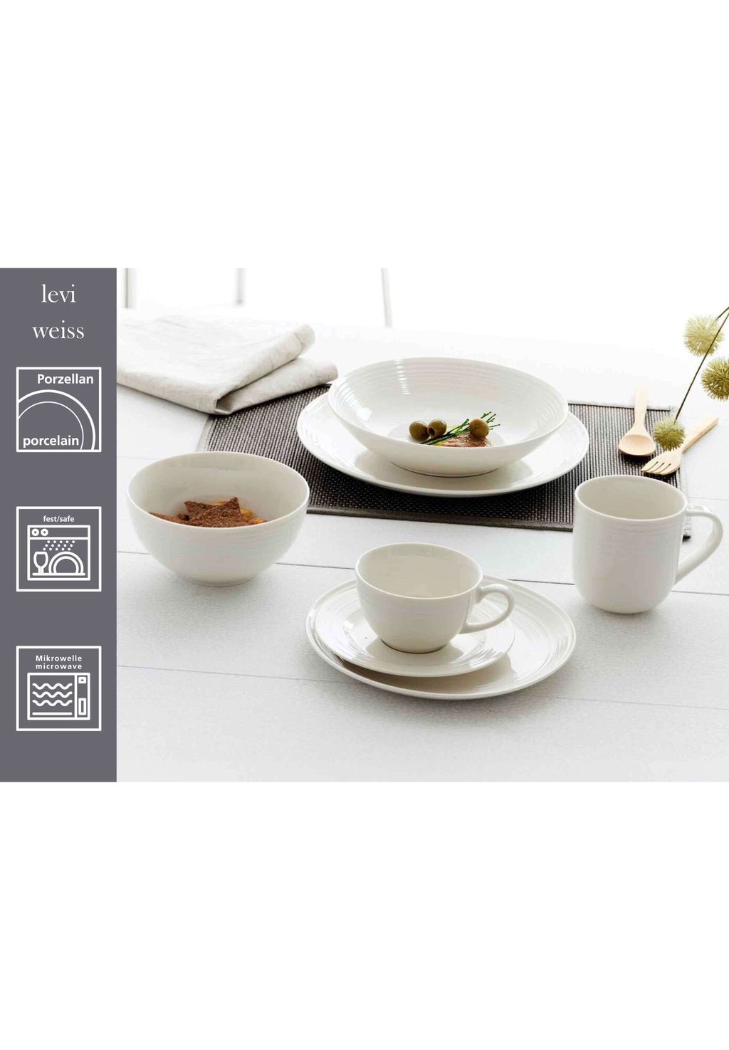 Изысканное очарование: благодаря своей приятной сдержанной эстетике, гармоничным, простым формам и мягким цветам, сервиз «Levi» станет прекрасным дополнением к любому приему пищи и станет приятным дополнением к любому столовому сервизу. Тонкие рельефные полосы, проходящие по верхнему и внешнему краям предметов, придают их лаконичному дизайну естественную, деревенскую утонченность и идеально дополняют его как визуально, так и тактильно. «Levi» прекрасно вписывается как в атмосферу скандинавского загородного дома, так и в атмосферу городского индустриального лофта, а сочетание тонов привносит нотку элегантности. Сочетание серого, синего, кремового и белого цветов создает кажущуюся случайной повседневность с фактором хорошего самочувствия.