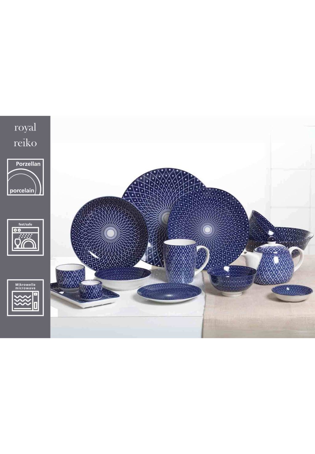 Чудо синего сочетания: дизайны «Makoto», «Reiko» и «Sakura» покоряют сердца космополитов, следящих за модой, как современная стильная адаптация традиционных японских рисовых мисок. Поскольку раньше рисунки рисовали только вручную и, следовательно, невозможно было идеально скопировать на каждую тарелку, они были разработаны по-разному для каждой тарелки. Несмотря на то, что каждый дизайн имеет свой собственный характер, «Makoto», «Reiko» и «Sakura» идеально сочетаются на столе благодаря своему королевскому синему цвету.