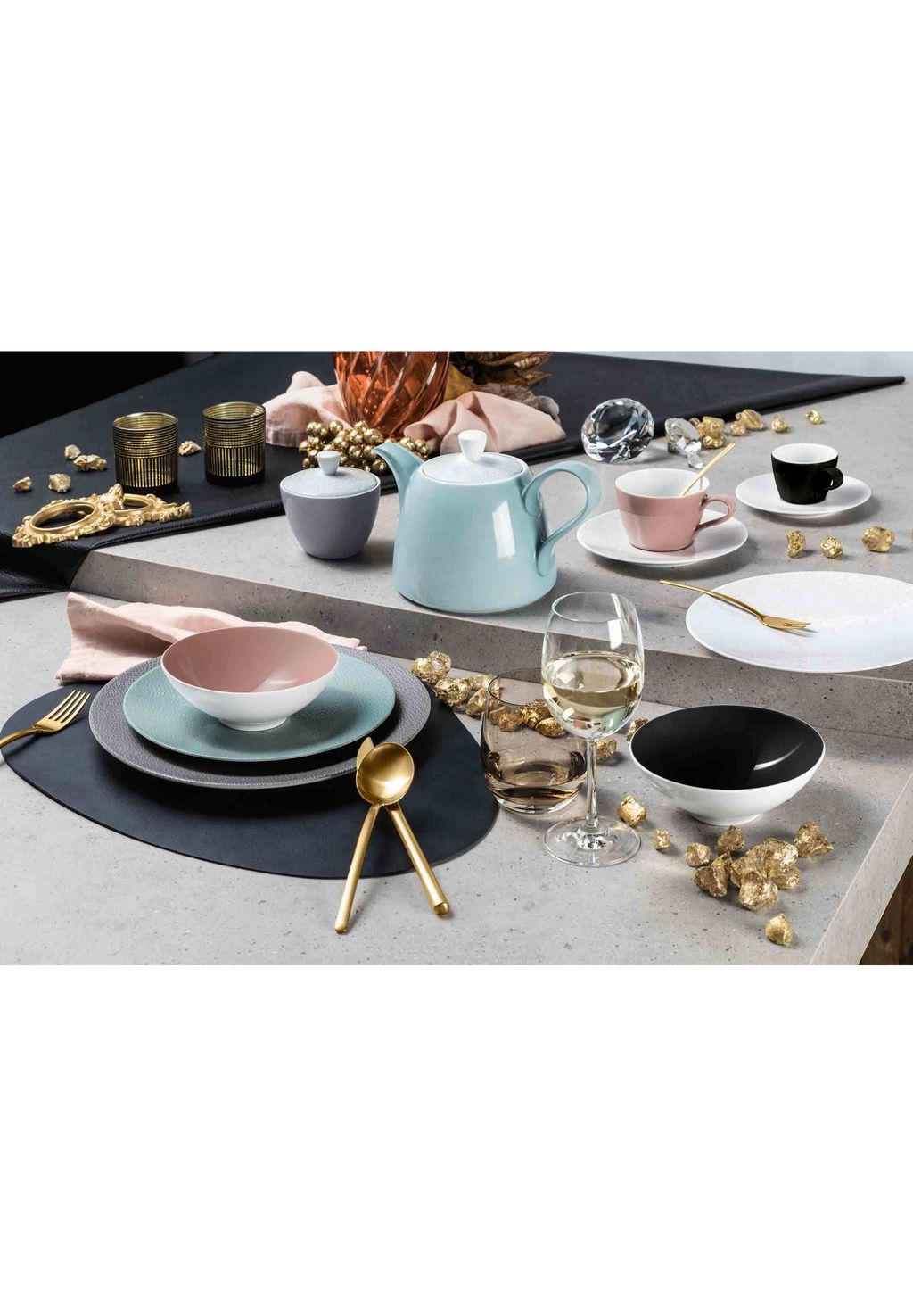 Элегантная коллекция Grey Life от Seltmann Weiden представлена в пяти особых вариантах декора и поверхностей, которые можно комбинировать бесконечно по-новому. Цвет внешнего декора и белая внутренняя часть (чашки, миски) сочетаются с белым внутренним декором (тарелки для супа и пасты, десертная тарелка). Отдельные предметы украшены напечатанным матовым рельефным узором, некоторые из которых однотонные (плоские тарелки, сервировочные блюда), некоторые с тонким цветным узором на белом фоне (блюдца, кувшины).
