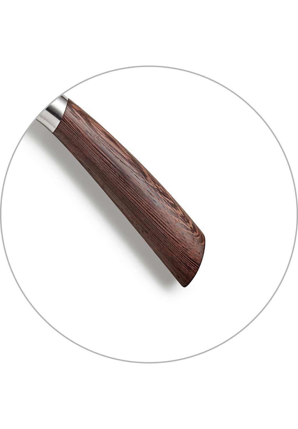 Описание товара: Этот поварской нож, идеально сбалансированный и оснащенный очень острым лезвием, идеально подходит для овощей, мяса и зелени. Рукоятка из венге удобно и надежно лежит в руке, придавая ножу изысканный, высококачественный вид.