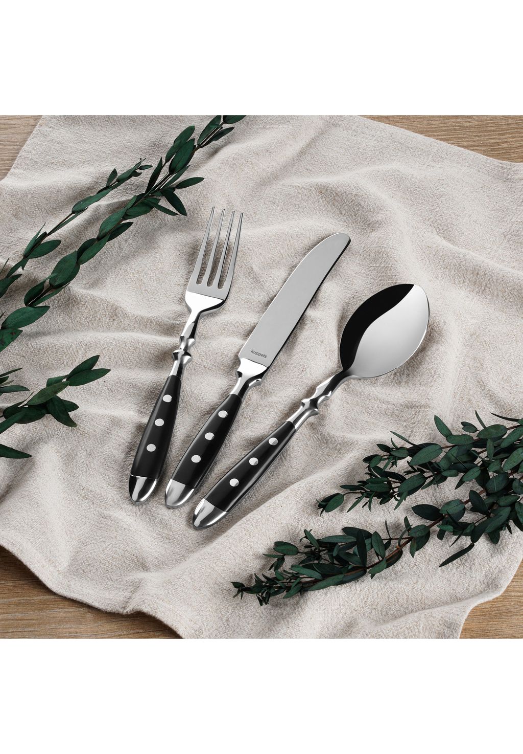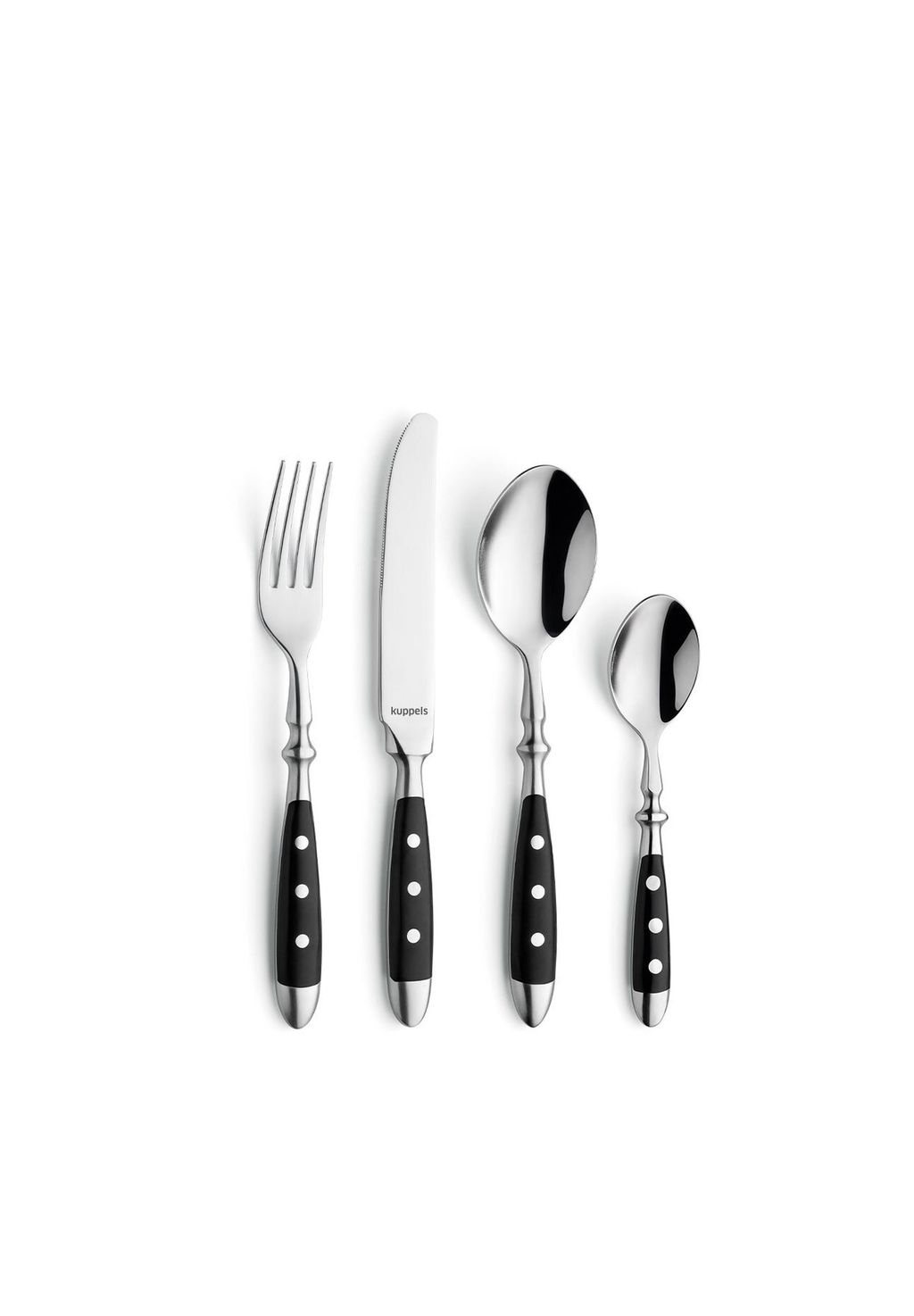 Описание товара: Деревенский шарм и современная функциональность: набор столовых приборов COUNTRY из 24 предметов черного цвета от Kuppels сочетает в себе классический дизайн и высокое качество изготовления. Черные ручки с тройными заклепками придают набору эффектный вид и обеспечивают приятные ощущения.