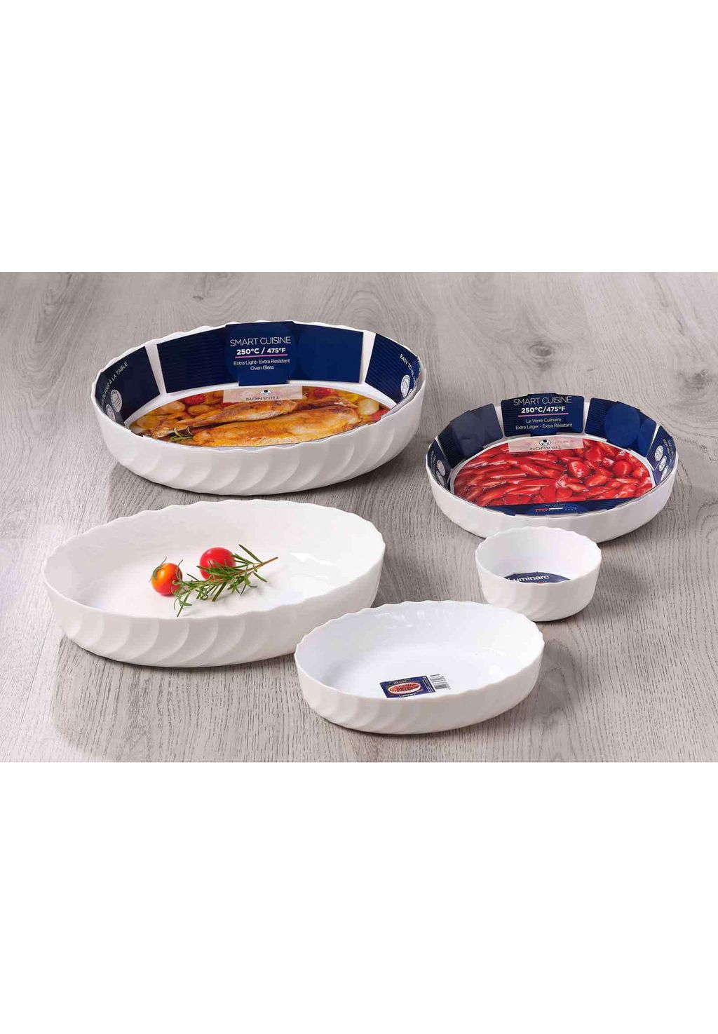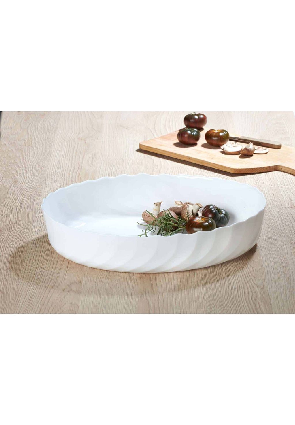 Эти прочные формы для запекания, имитирующие фарфор, изготовлены из полностью закаленного опалового стекла и подходят для приготовления и подачи пищи. Материал особенно устойчив к механическим и термическим нагрузкам, поэтому его можно мыть в посудомоечной машине, использовать в духовке при температуре до 250 °C и в микроволновой печи. Он более ударопрочный, прочный и устойчивый к царапинам, чем фарфор.