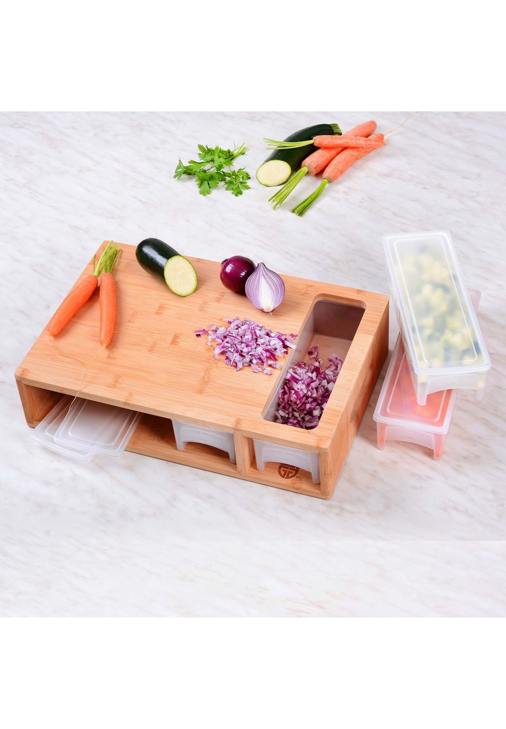 Комплект поставки: 1 бамбуковая разделочная доска с 4 ящиками, в выбранном дизайне