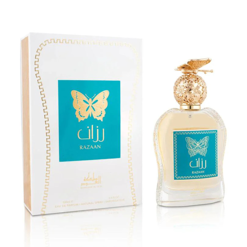 Razaan — яркий и освежающий аромат, который раскрывается ярким сочетанием хрустящего яблока, пикантного бергамота и цитрусовой яркости апельсина, лимона и мандарина, дополненных мягкой сладостью персика и тонкой пряностью розового перца. Сердце аромата — уникальная, элегантная нота флердоранжа, добавляющая цветочный штрих, одновременно свежий и изысканный. База из сандала обеспечивает мягкое, древесное тепло, заземляя аромат и обеспечивая его длительную привлекательность.
